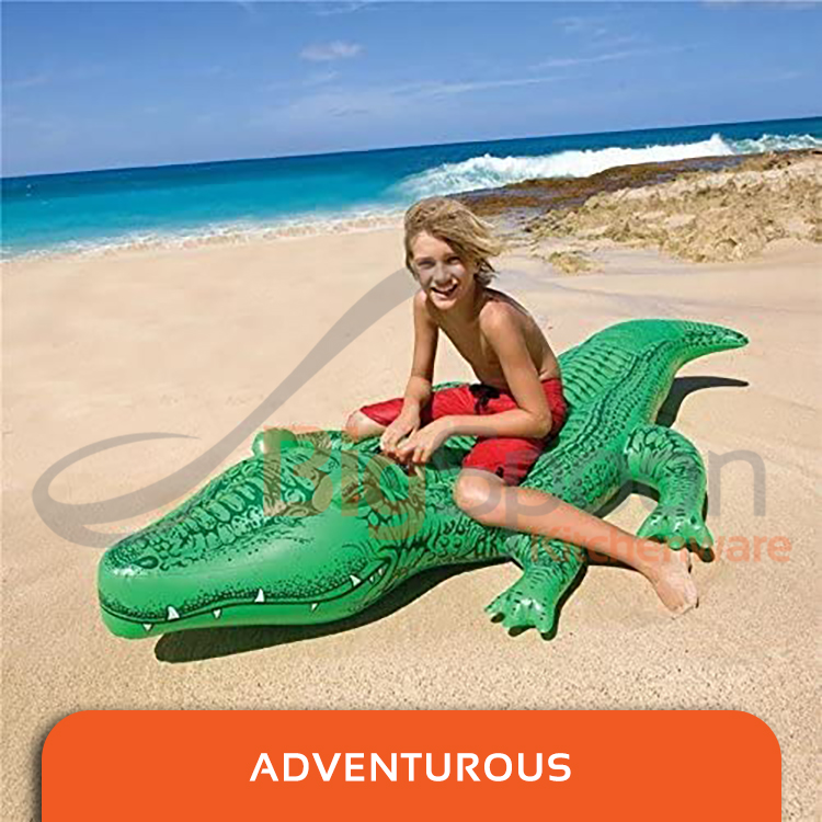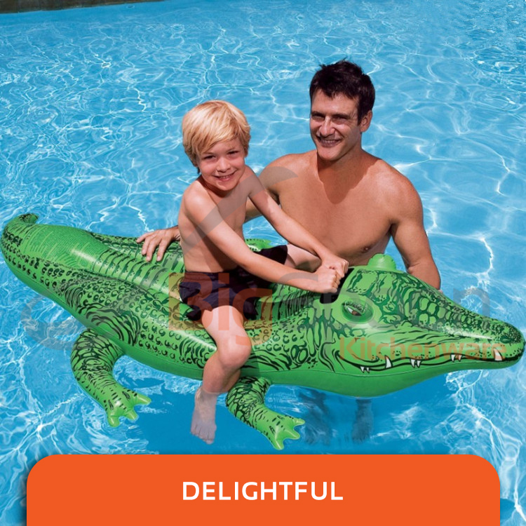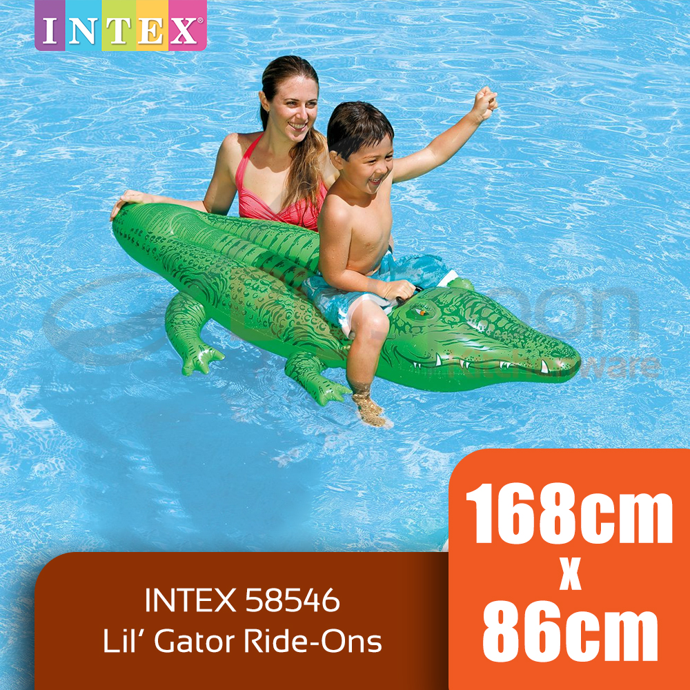 BIGSPOON INTEX 58546 Lil Gator Ride-On 1.68m x 86cm Inflatable Swimming Pool Floaties Aligator Crocodile Toys Kids Age 3