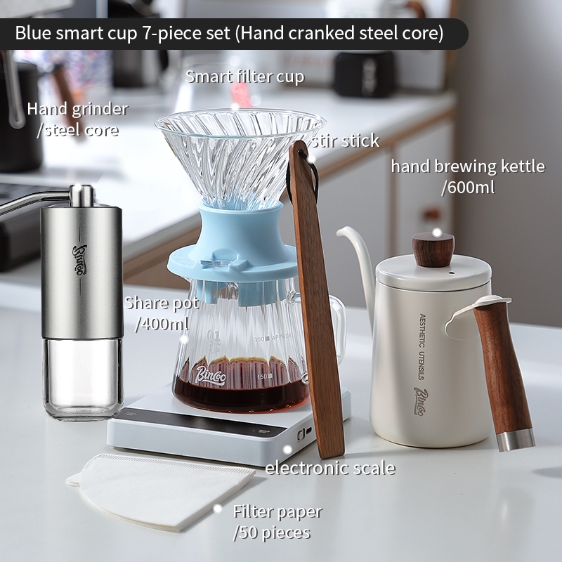 BINCOO Colorful Smart Filter Cups Hand Brewed Coffee Filter Glass Drip Filter Cups Hand Brewer Sharing Pot Immersion Stirring Set 600ML