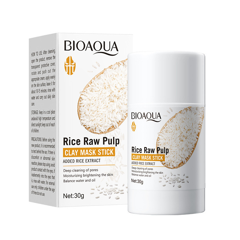BIOAQUA Rice Raw Pulp Clay Mask Stick Deep Cleaning Pores Moisturizing Brightening Balance Water Oil Control 45g