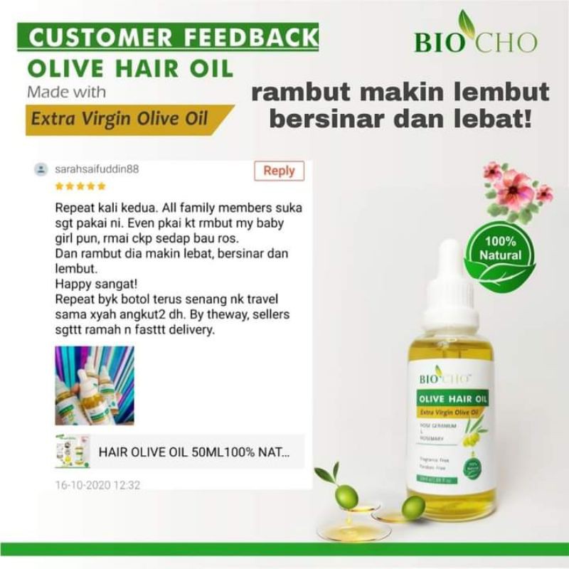 BIOCHO Olive Hair Oil Extra Virgin Olive Oil 100% natural 50ml