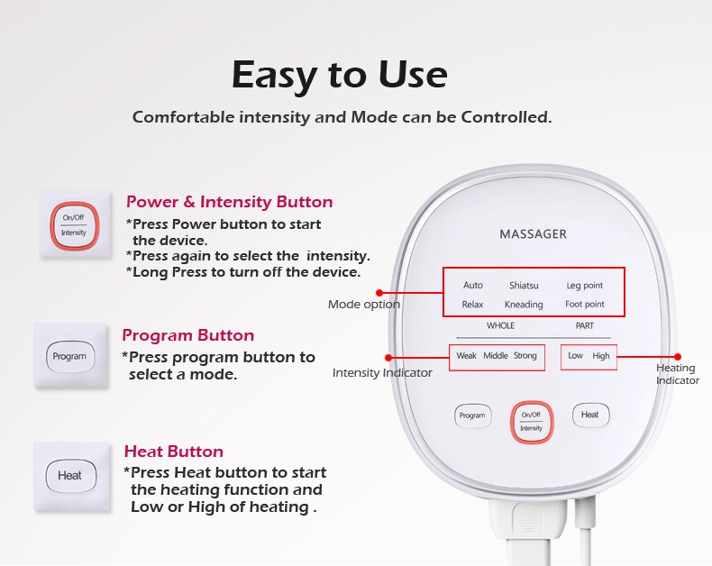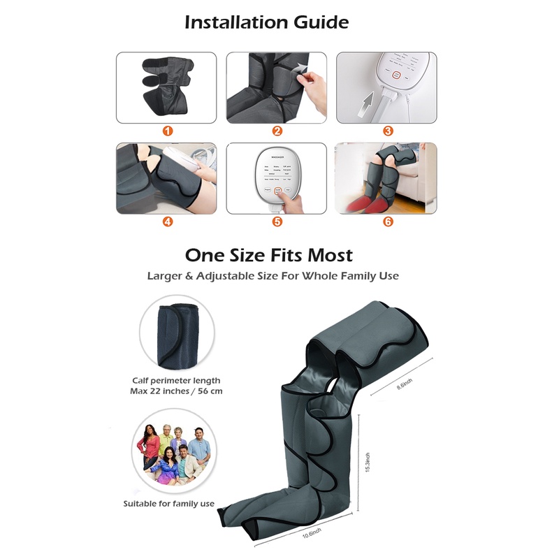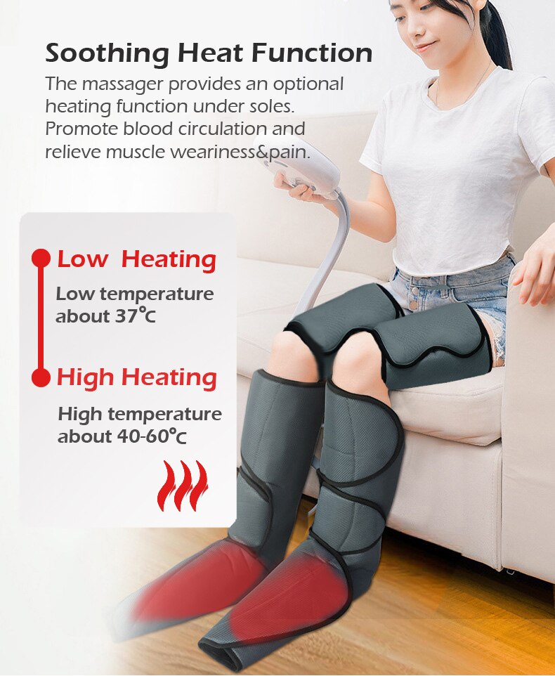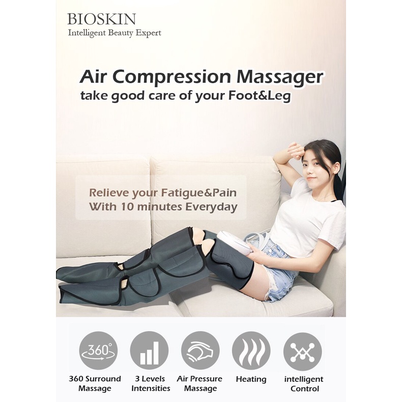 BIOSKIN Leg Air Compression Massager Heated for Foot and Calf Thigh Circulation with Handheld Controller 6 Modes 3 Intensities