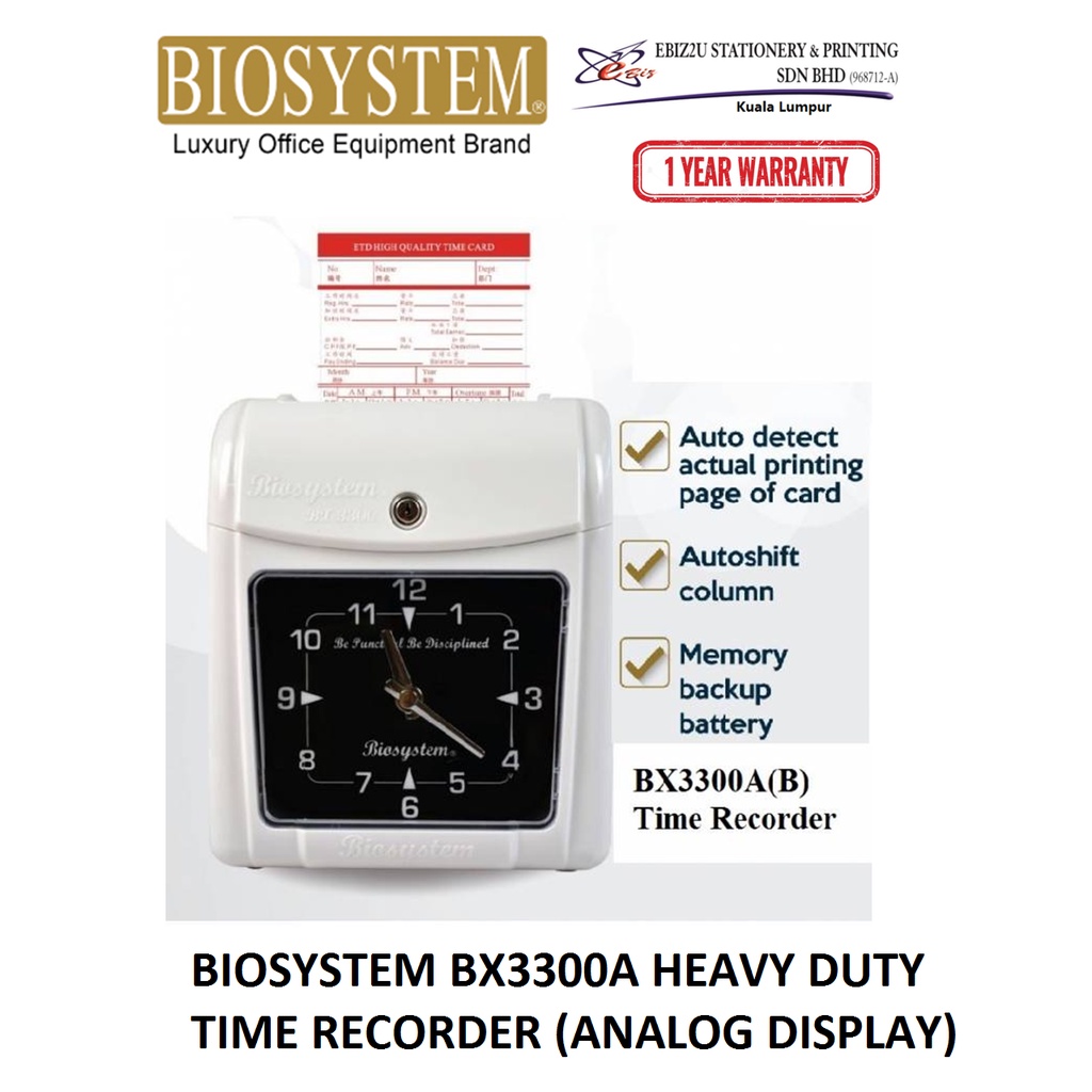 BIOSYSTEM BX3300A HEAVY DUTY TIME RECORDER (ANALOG DISPLAY) punch card machine, mesin kad punch