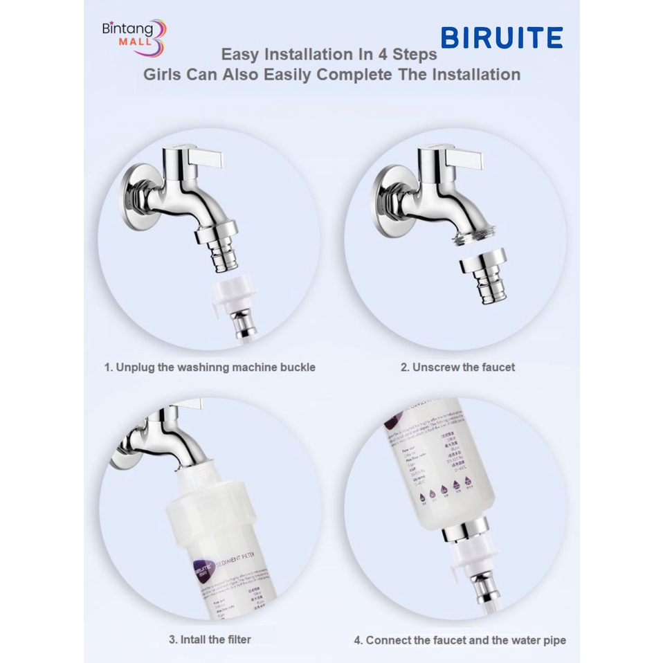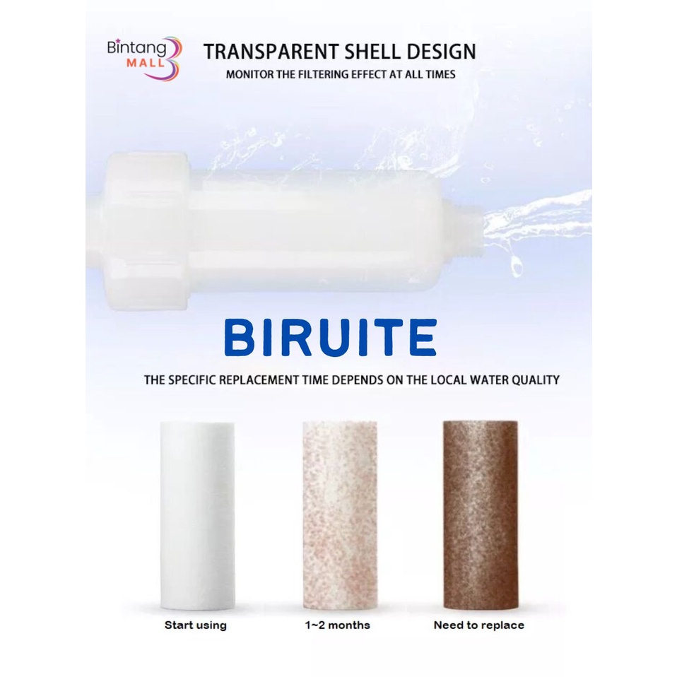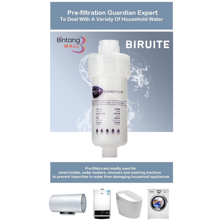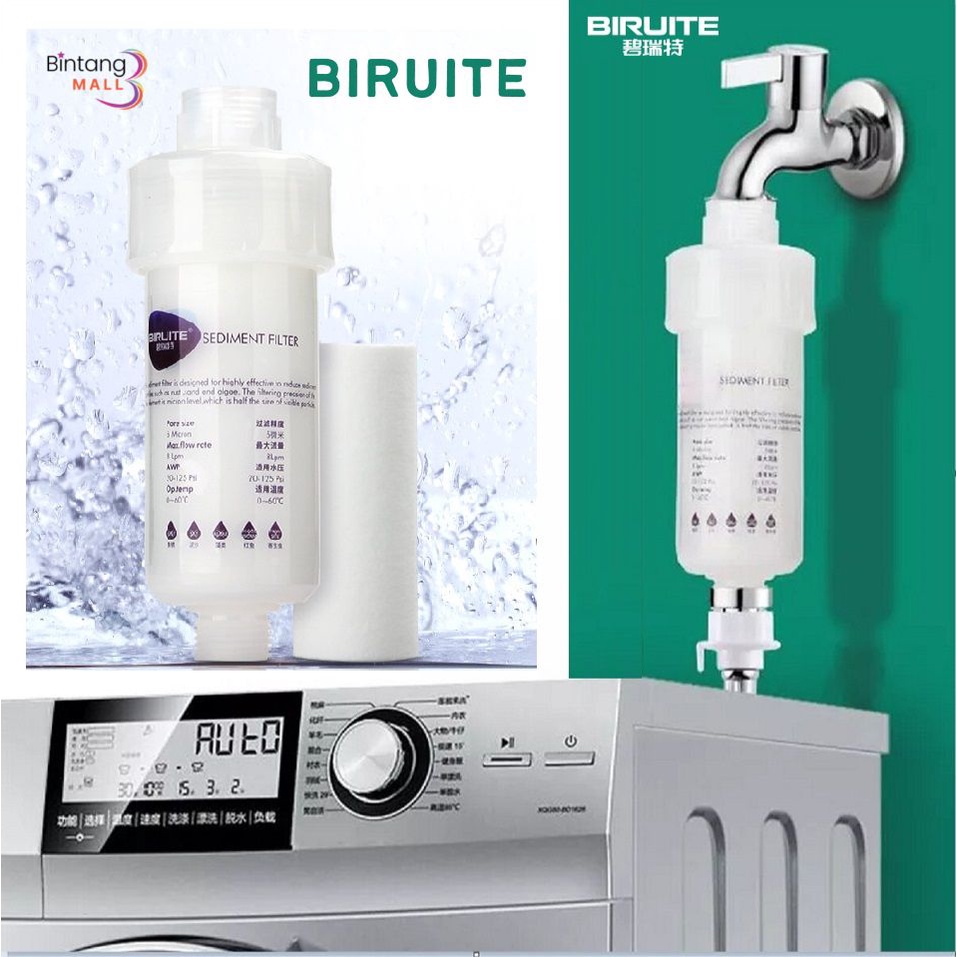 BIRUITE 5" Water Purifier Filter for Washing Machine, Water Filter, Household Top Water Pipe, shower, basins