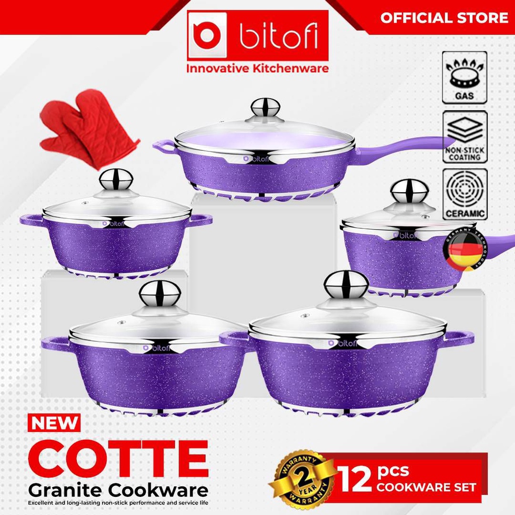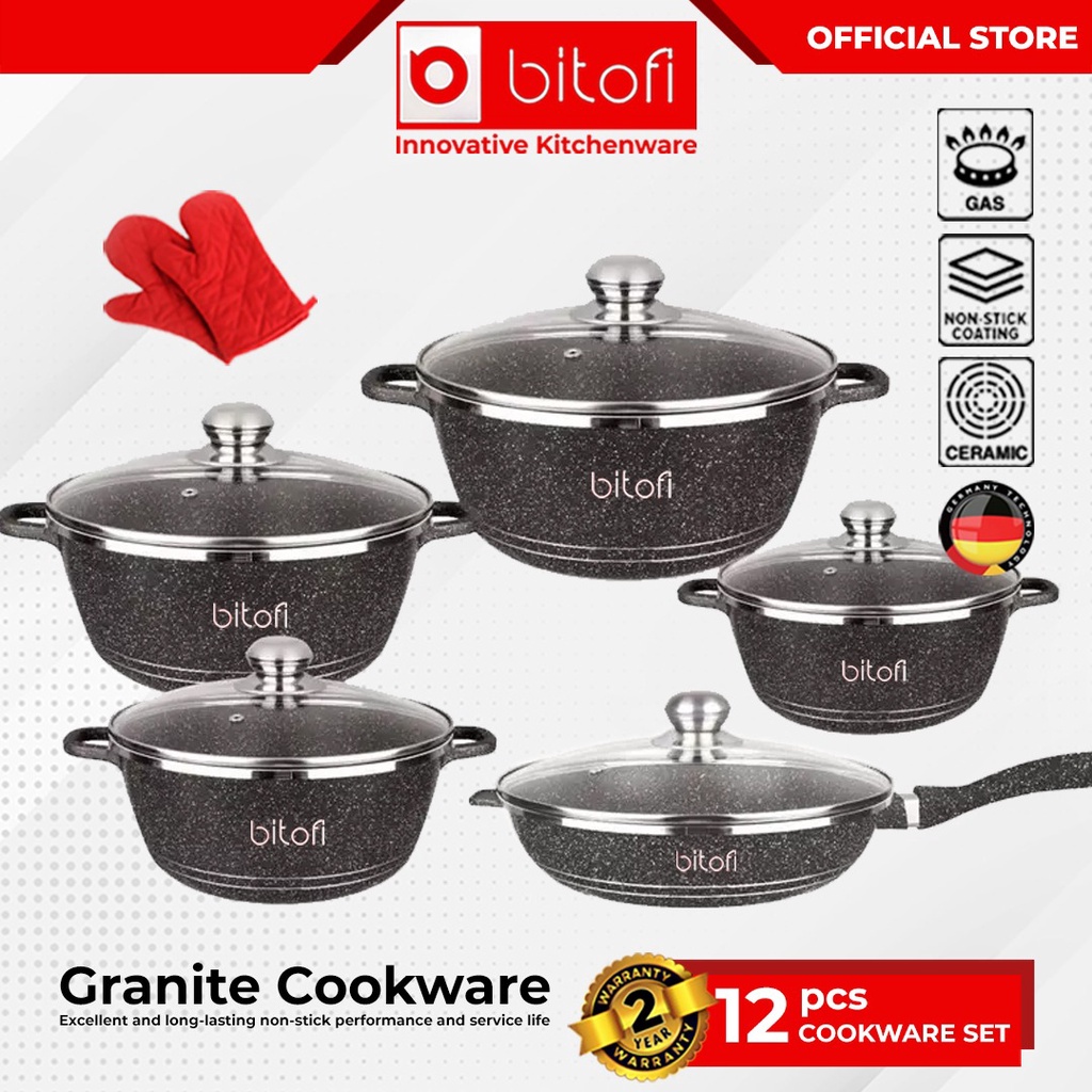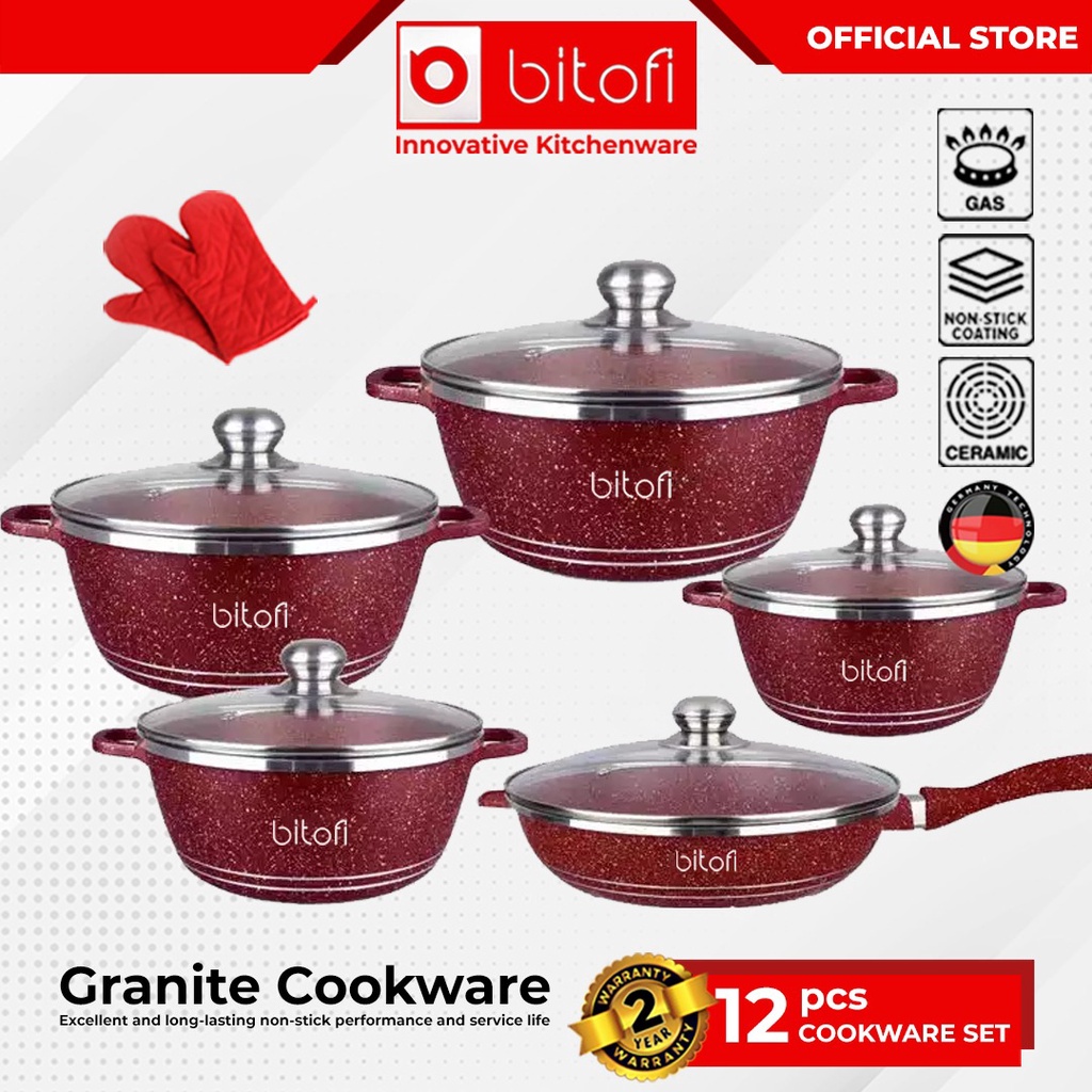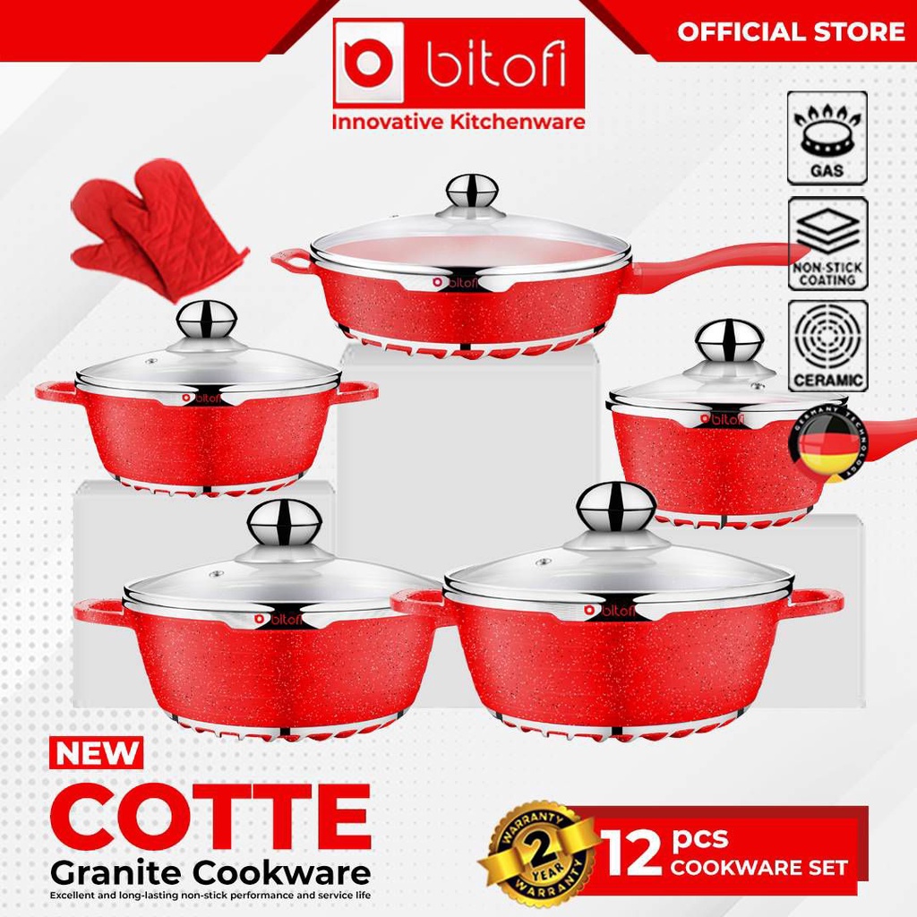 BITOFI GERMANY Granite Plus 12 PCS Cookware Set Non-Stick Granite Kitchen Cookware Periuk Anti Lekat (RED)