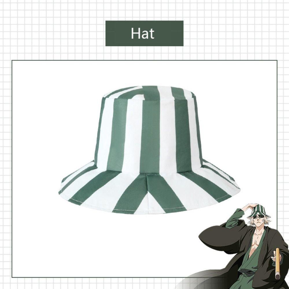 BJ Striped Hat, Bleach Dome Bucket Hat, Portable Anime Urahara Kisuke Green and White Cosplay Cap Cosplay