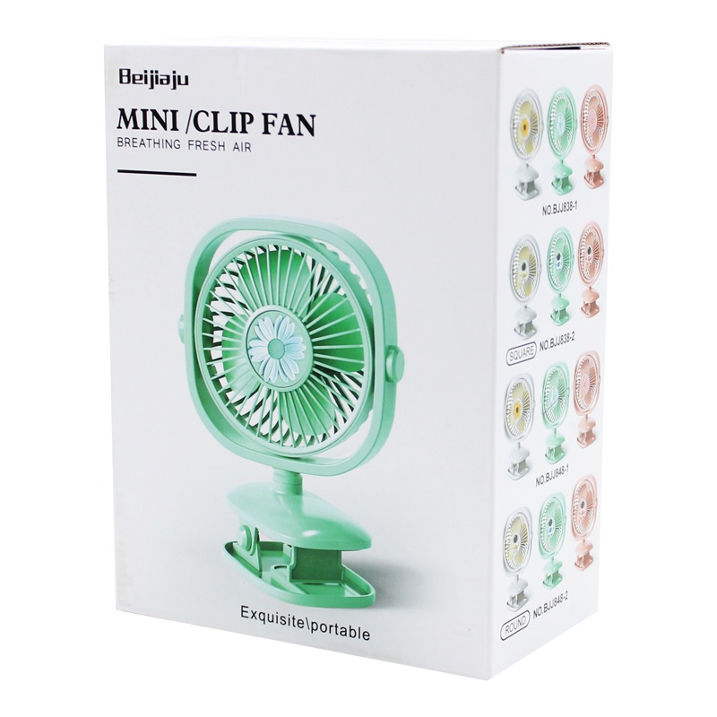 BJJ848 Mini Clip Fan Portable 360 Rotation with RGB lights Clip-On Desktop Fan USB Rechargeable