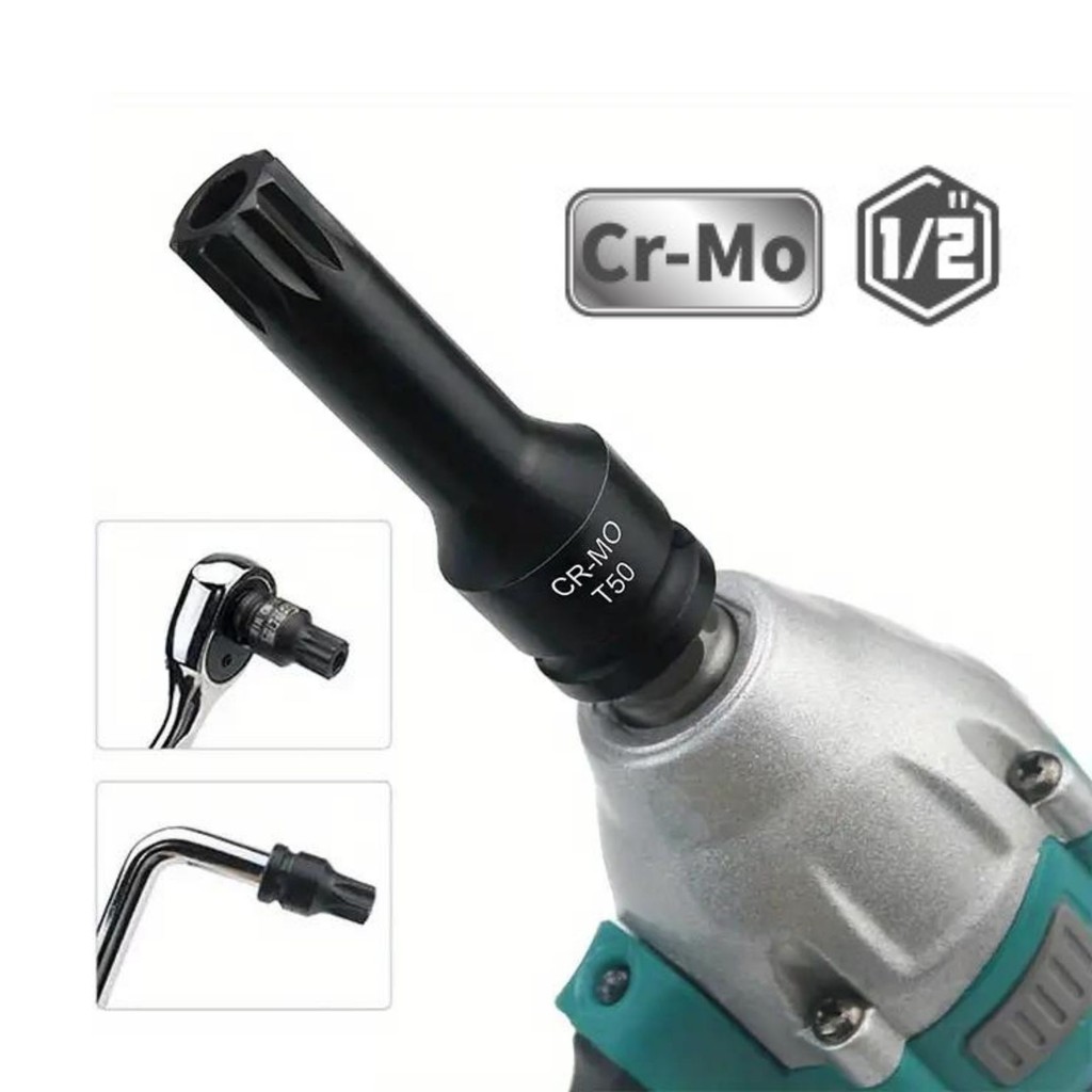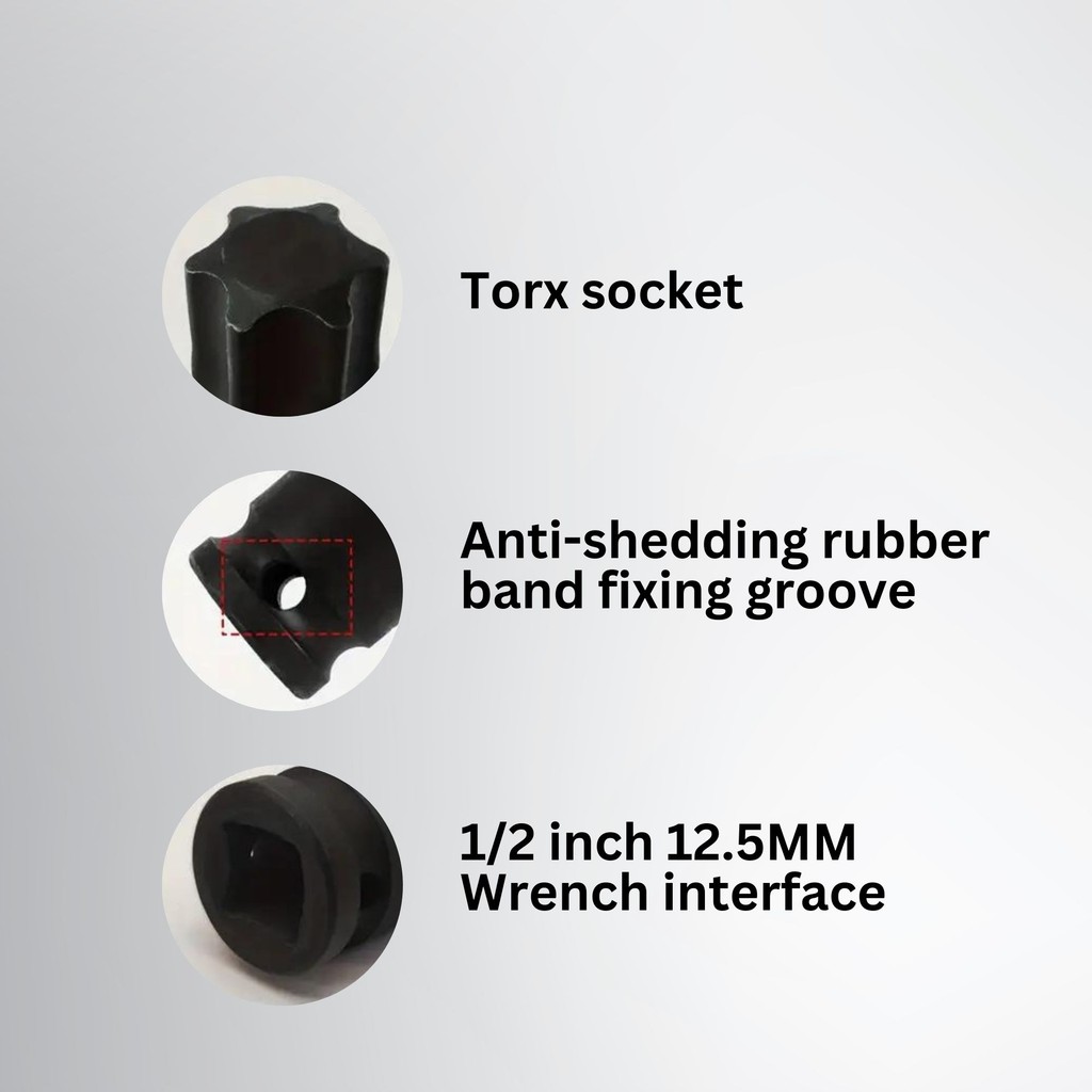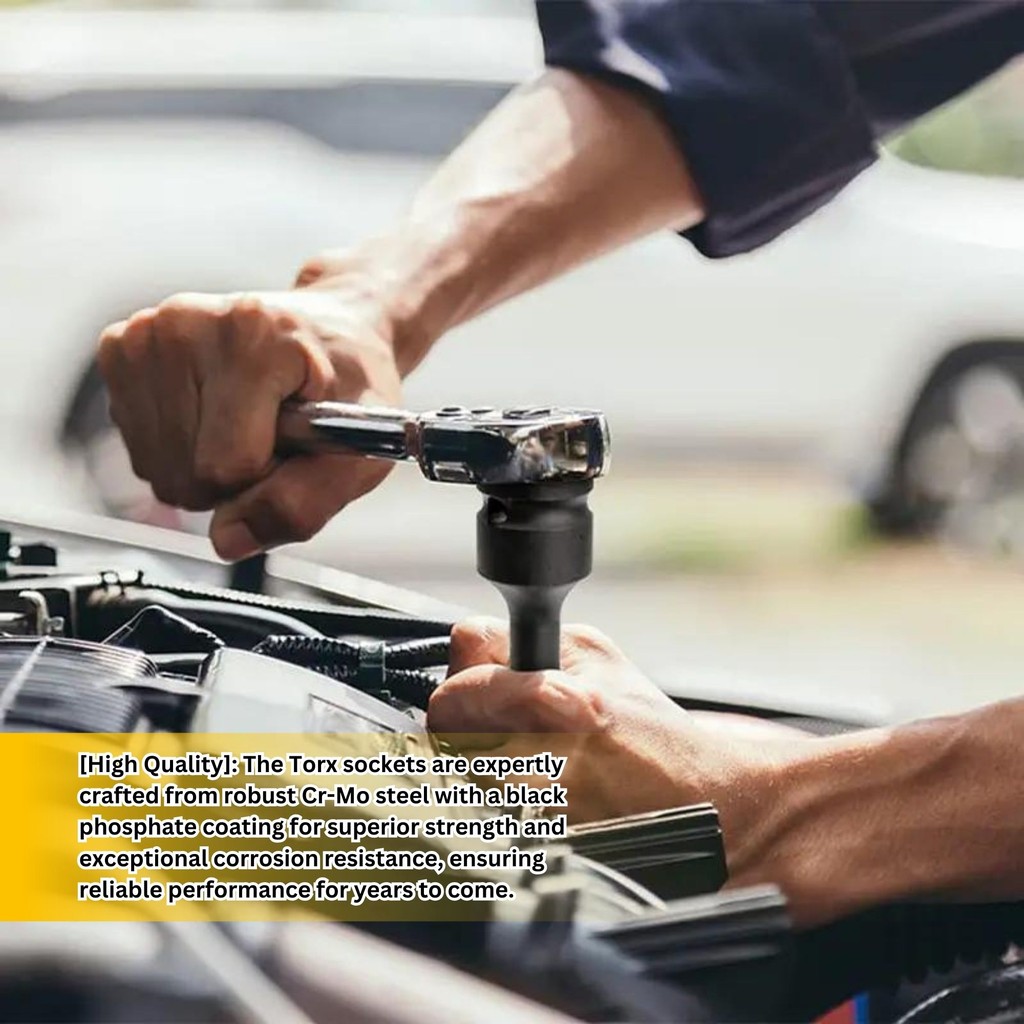 BKK 10pcs 1/2 Inch Torx Impact Socket Set T25-T80 CR-MO T Type Impact Driver Tool Box Torx Bit Black Impact Wrench Set