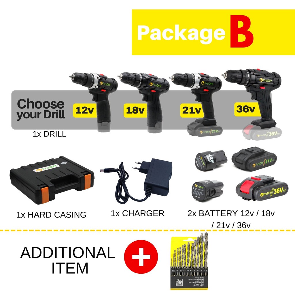 BKK DIB Cordless Drill Impact Driver Mesin Tebuk Lubang Screwdriver Hammer Drill Pemutar Skru Battery 12V 18V 36V