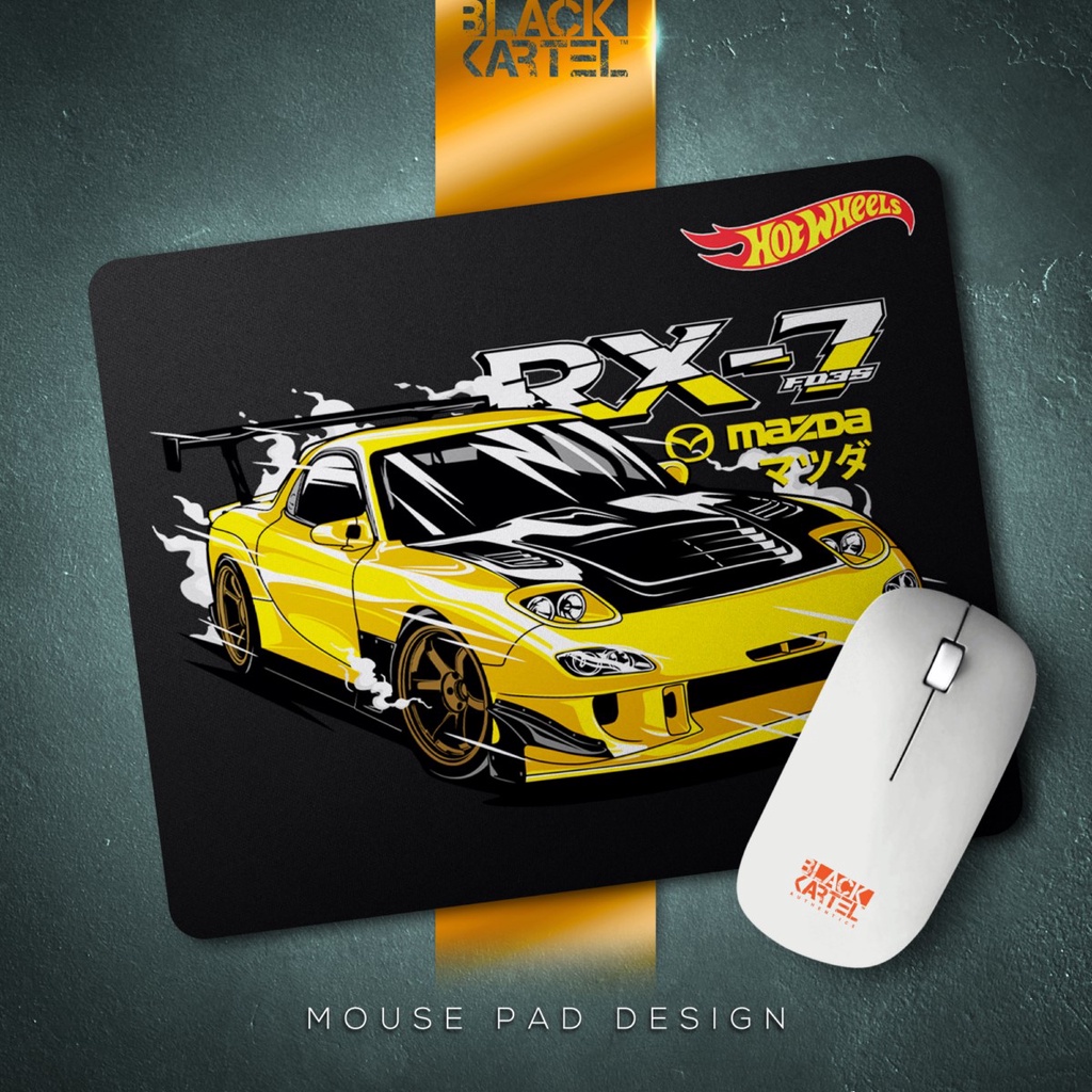 BLACK KARTEL [ GAMING MOUSE PAD - HOTWHEELS CAR DESIGN - MAZDA RX7 ] Non-slip rubber base
