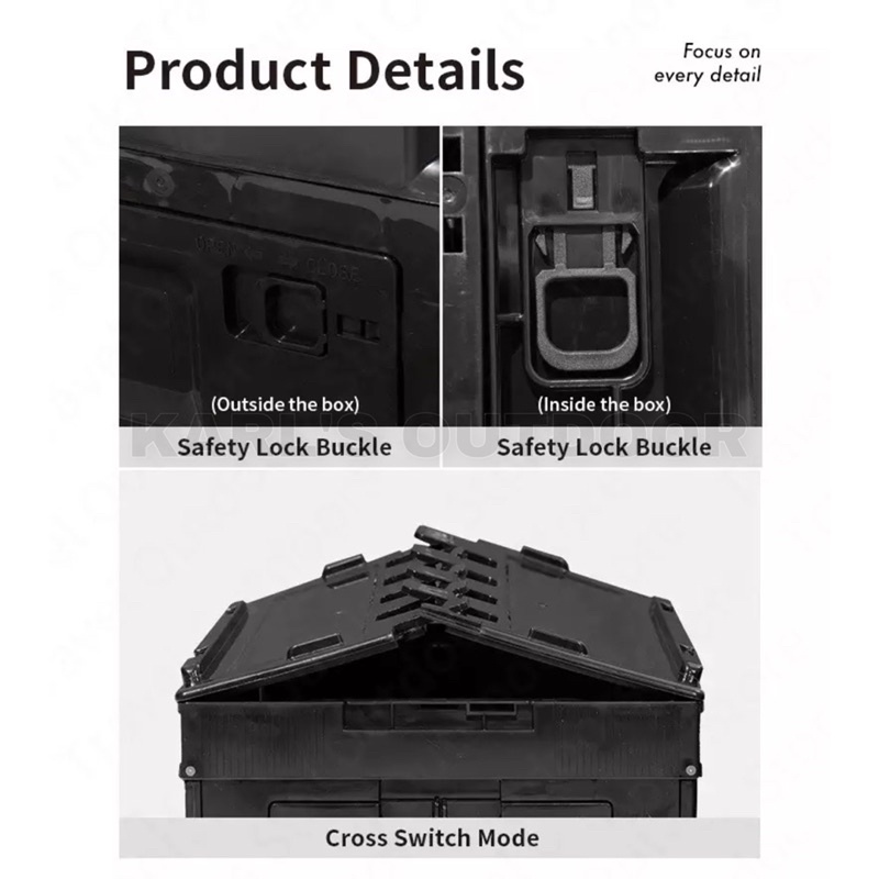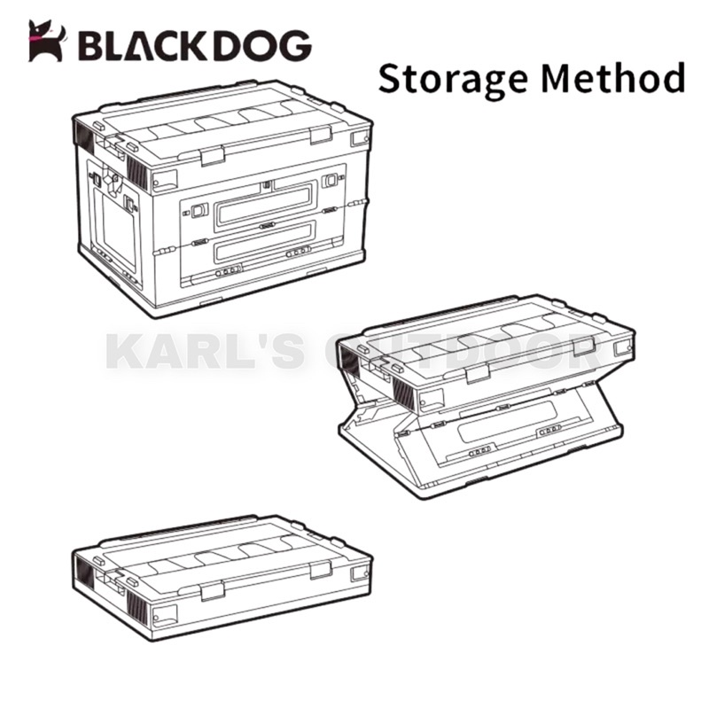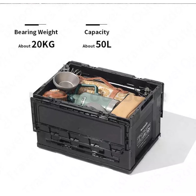 BLACKDOG Folding Storage Box 50L High-Capacity Foldable Portable Pp Material Camping Tool Box Double Door Black Camping