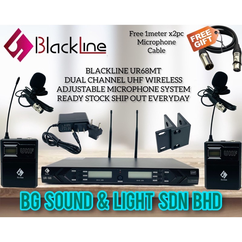 BLACKLINE UR68 UHF DUAL WIRELESS HAND MIC With Free 1Meter X2 ( UR-68 )
