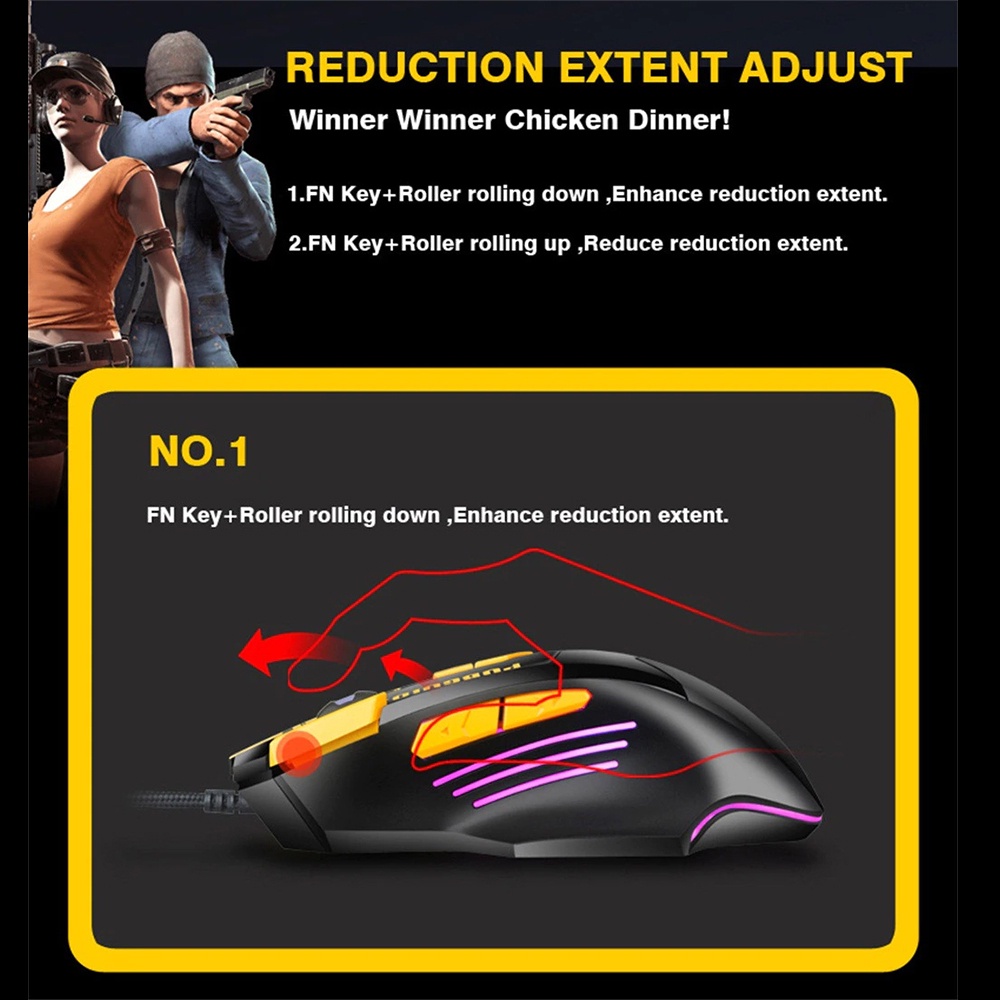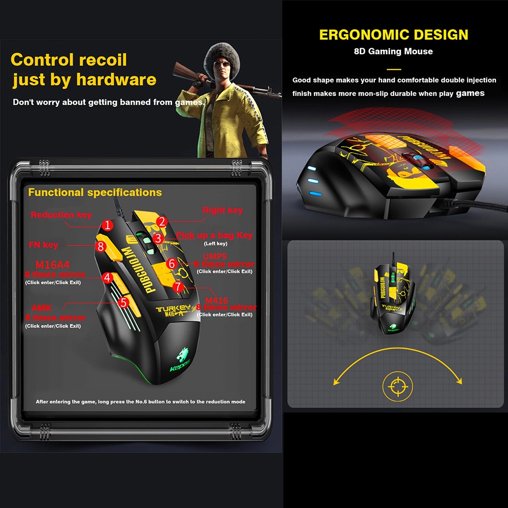 BLOODBAT M416 Wired Gaming Mouse 8 Keys Ergonomic Design RGB LED Light 4800DPI Optical Mice PUBG Gamer for Laptop PC