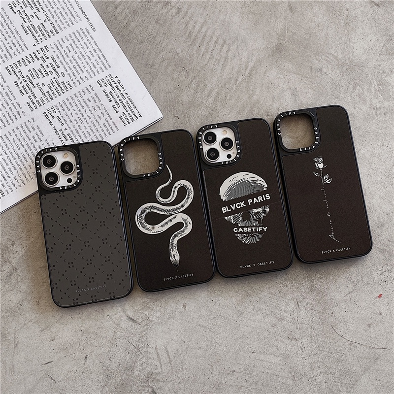 BLVCK Skull snake Melancholy Mirror Case iPhone 14 Pro MAX 13 12 11 Pro MAX XR X XS MAX 6/7/8 Plus SE2020 TPU Shockproof Phone Cover Back Cute Fashion INS Style Casing