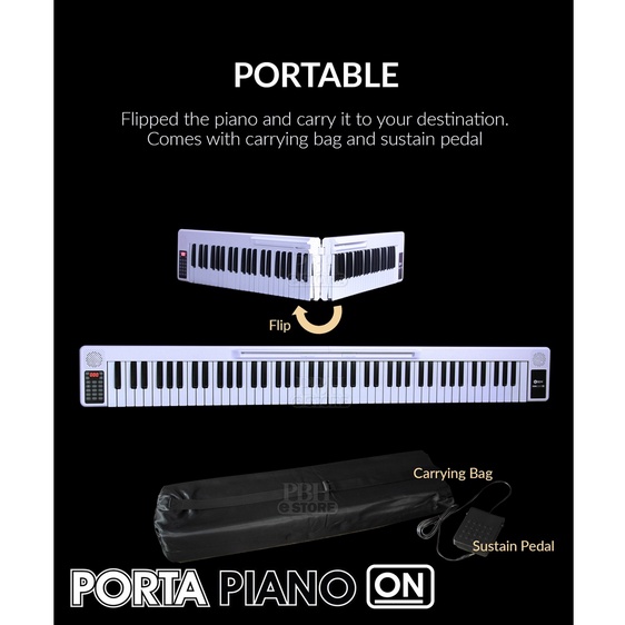 BLW 88 Keys Foldable Portable Rechargeable Practise and Performance Travel Keyboard Piano - PortaPiano ON