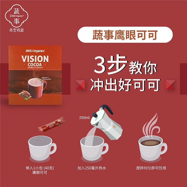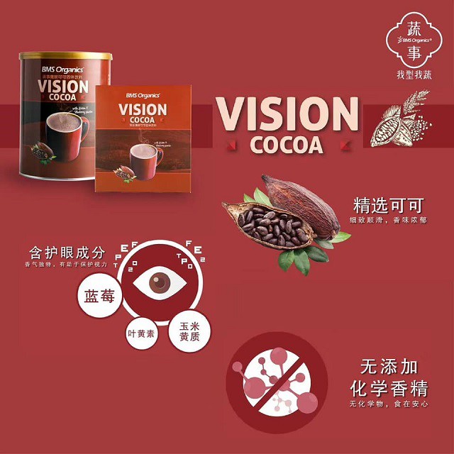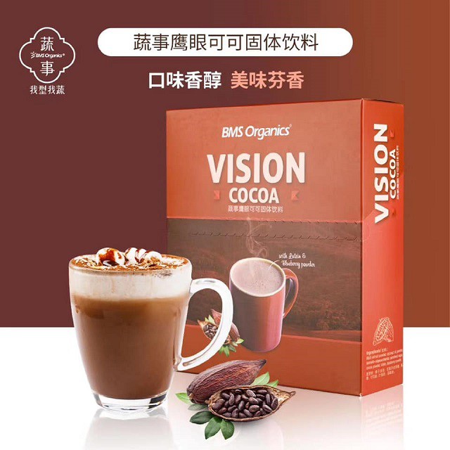 BMS Organics - Vision Cocoa (40g x 10 sachets)(Chocolate Drink)(Minuman Coklat Sihat) (Lutein, Zeaxanthin & Blueberry)