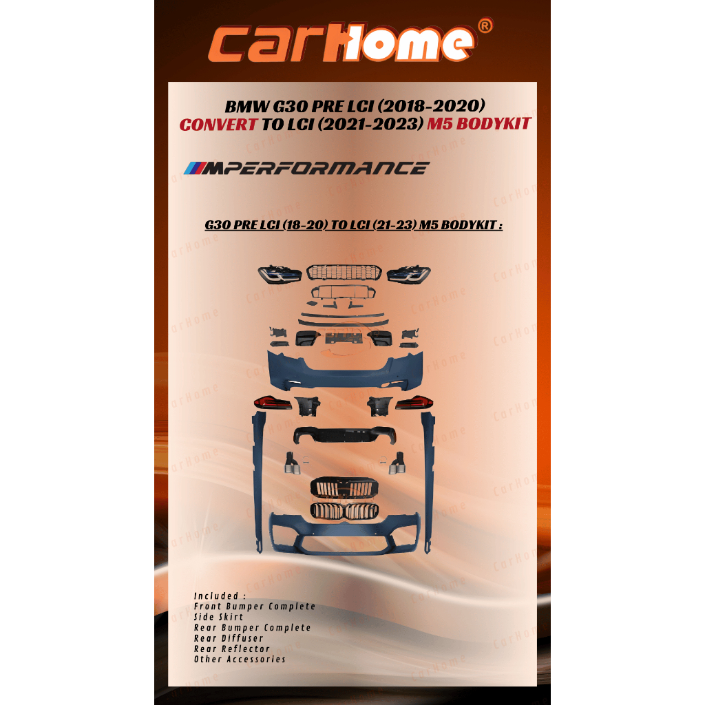 BMW G30 PRE LCI 18-20 CONVERT TO LCI 21- 23 BodyKit Front & Rear Bumper Side Skirt Hear & Tail Lamp Exhaust Pipes