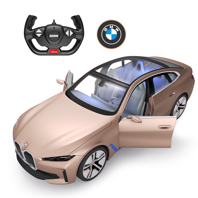 BMW i4 Remote Control Car Rastar 1/14 BMW i4 Concept RC Toy Car Golden BMW Model Car Diecast for Kids Boys Adults Radio Controlled Auto Machine Vehicle Toy Gift