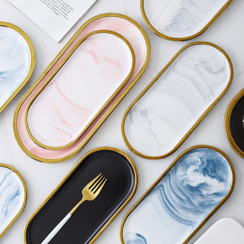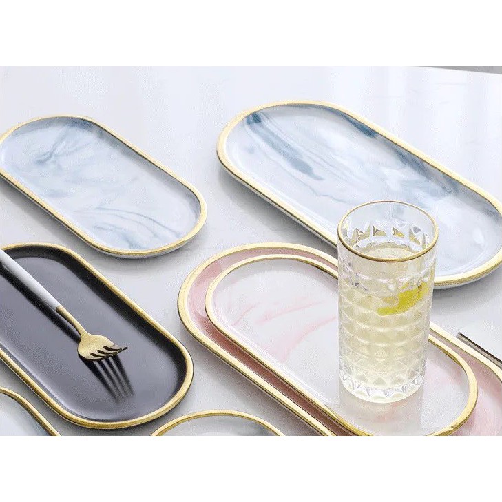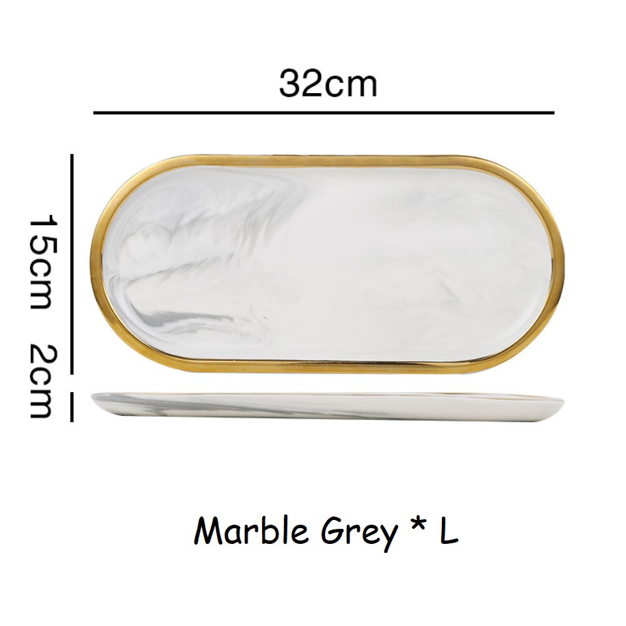 BO.EN Nordic Oval Series Luxury Ceramic Tableware / Oval Plate /Dinnerware with Gold Rim Dinner Plate