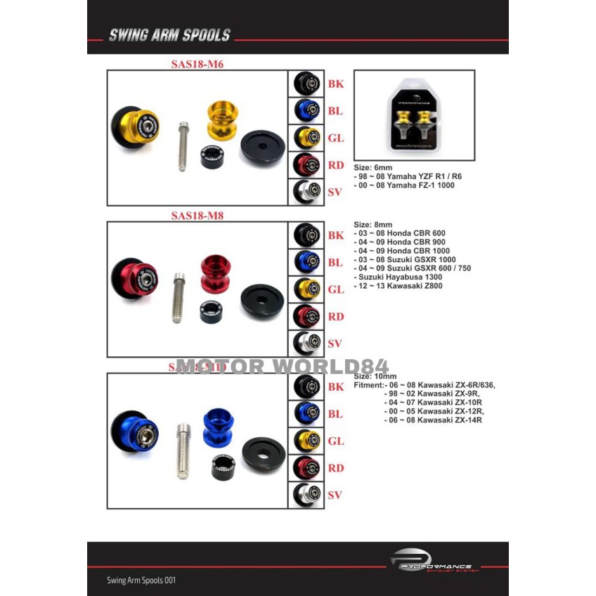 BOBBINS / SWING ARM SPOOLS MOTORCYCLE M6 / 8MM / 10MM YAMAHA R15