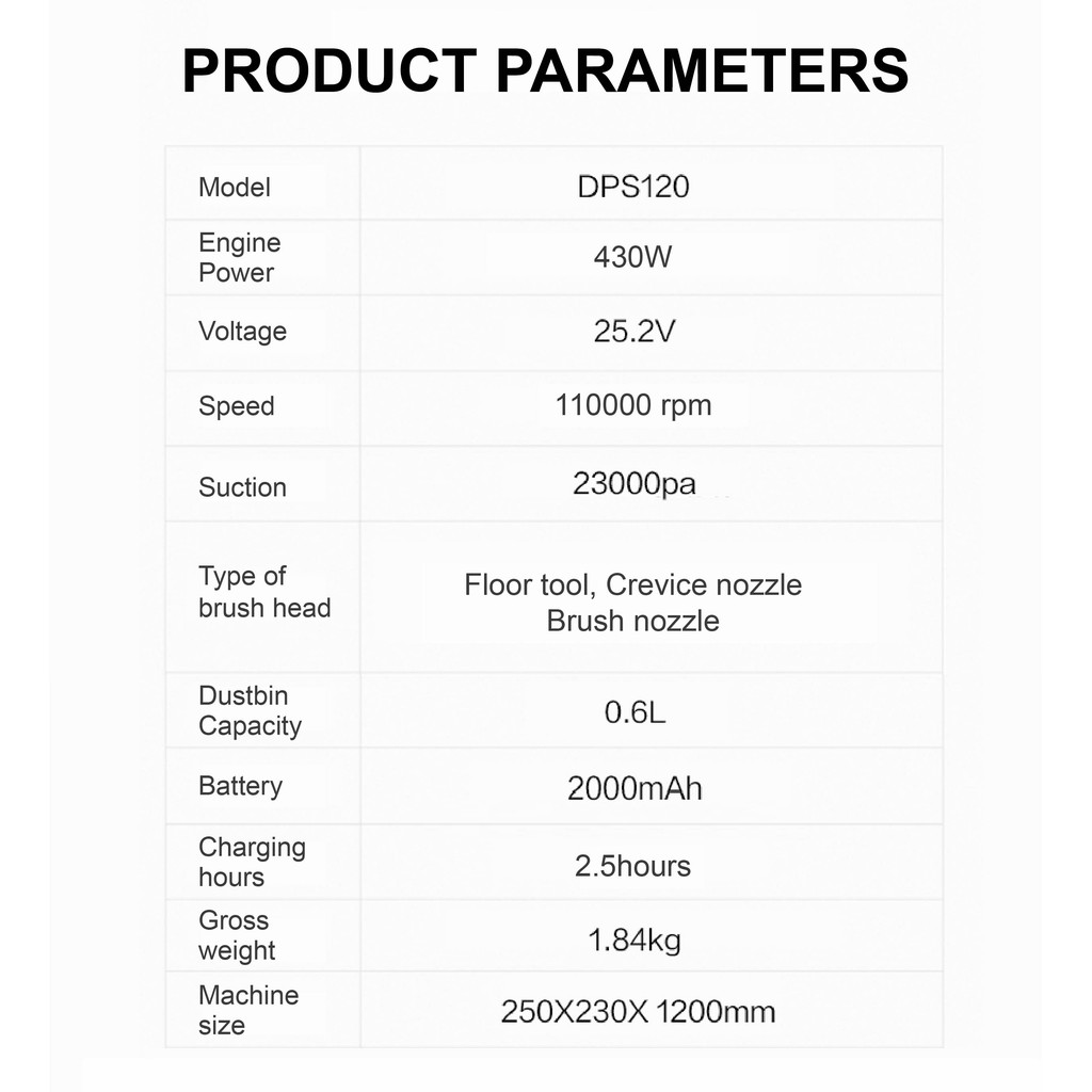 BOBOT HANDHELD VACUUM WIRELESS CLEANER (DPS120)
