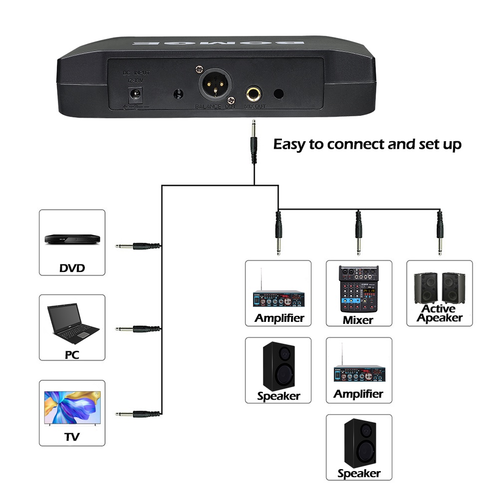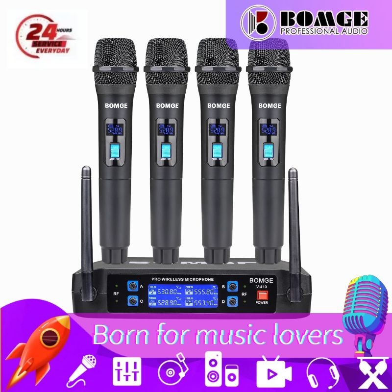 BOMGE 4-Channel Wireless Microphone System with 4 Hand-held Mics Karaoke Machine for Party/Wedding/Church/Conference