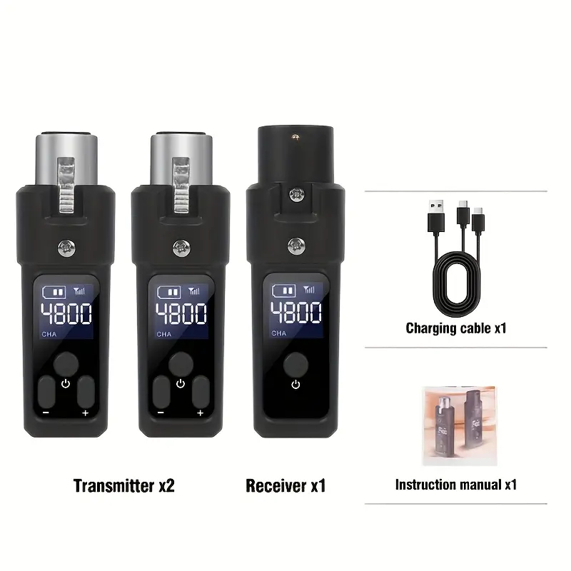 BOMGE Wireless Microphone Transmitter Receiver 2.4Ghz,MicWireless System, Rechargeable Wireless Mic Adapter with 48V for Audio Mixer, Dynamic Mic, PA System ,Electric Guitar Bass