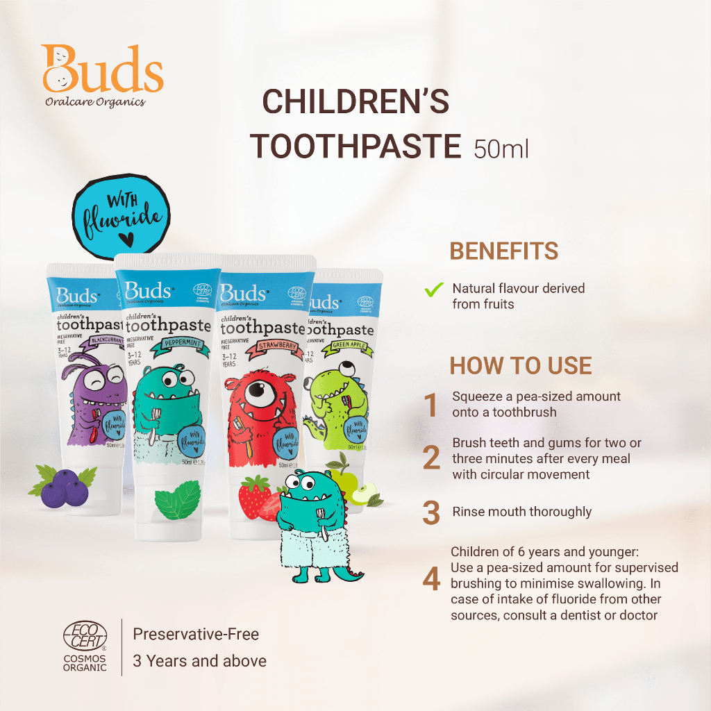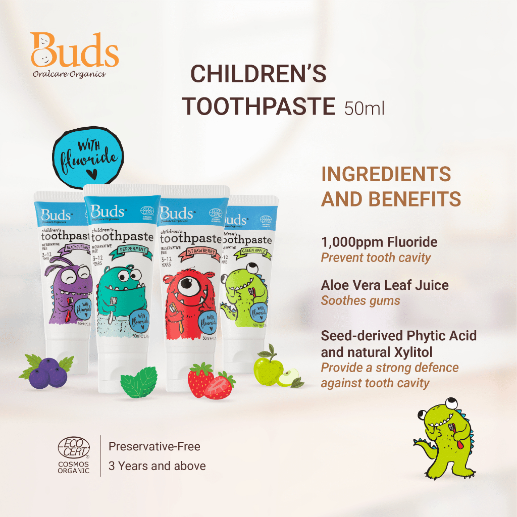Buds Organics BOO Children's Toothpaste with Fluoride - Peppermint (50ml)