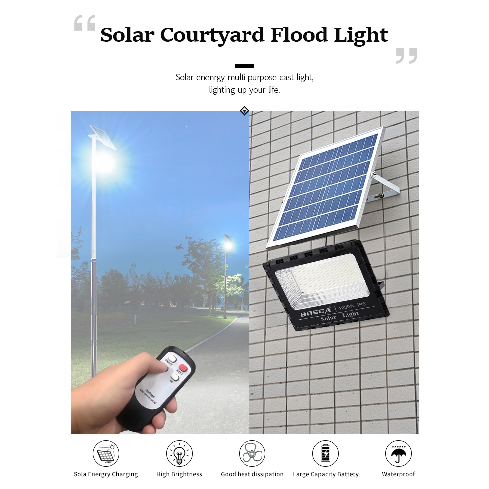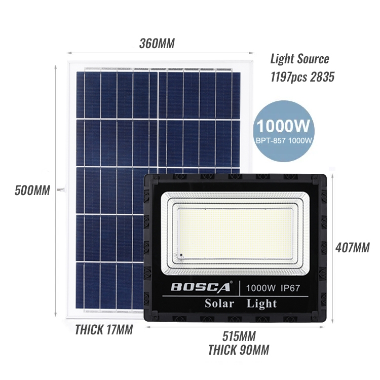 BOSCA Solar Flood Light 1000W IP67 solar flood light with remote control solar panel 35W BPT-857