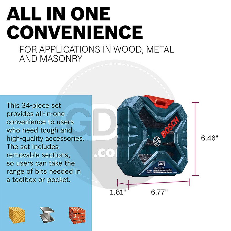 BOSCH 34 Piece X-Line Classic Drill Driver Bit & Screwdriver Bit Set, Mata drill, Mata Mesin