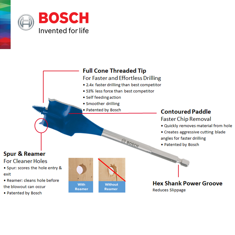 BOSCH 3pcs Self Cut Speed Spade Bit Set (20/22/25mm) - 2608587011