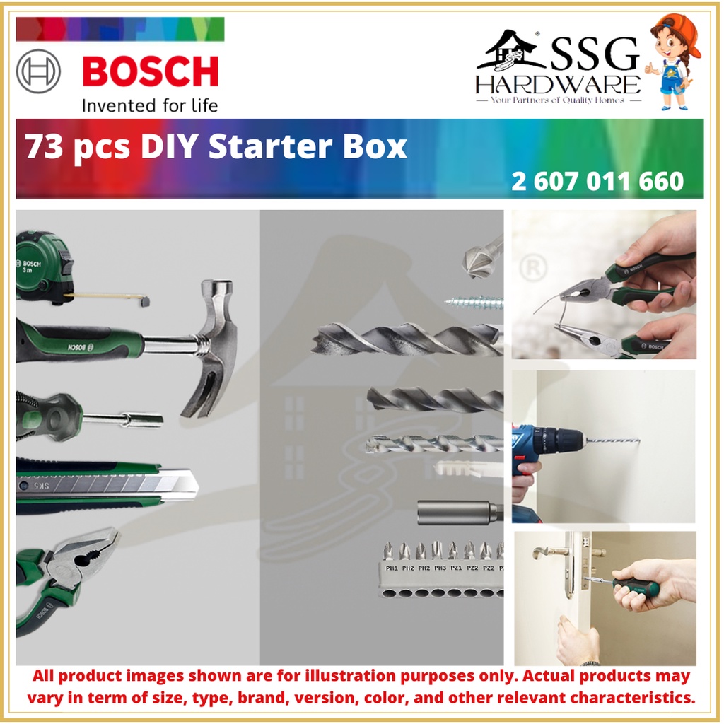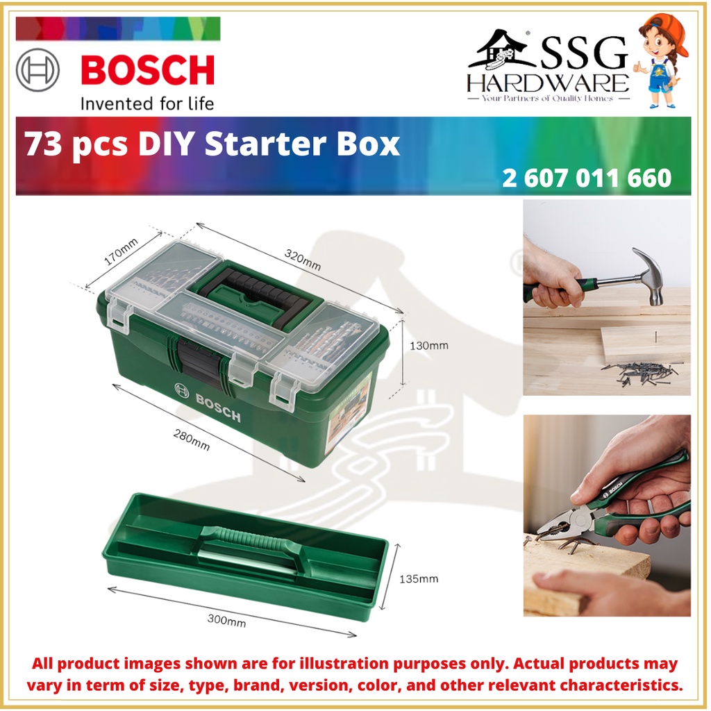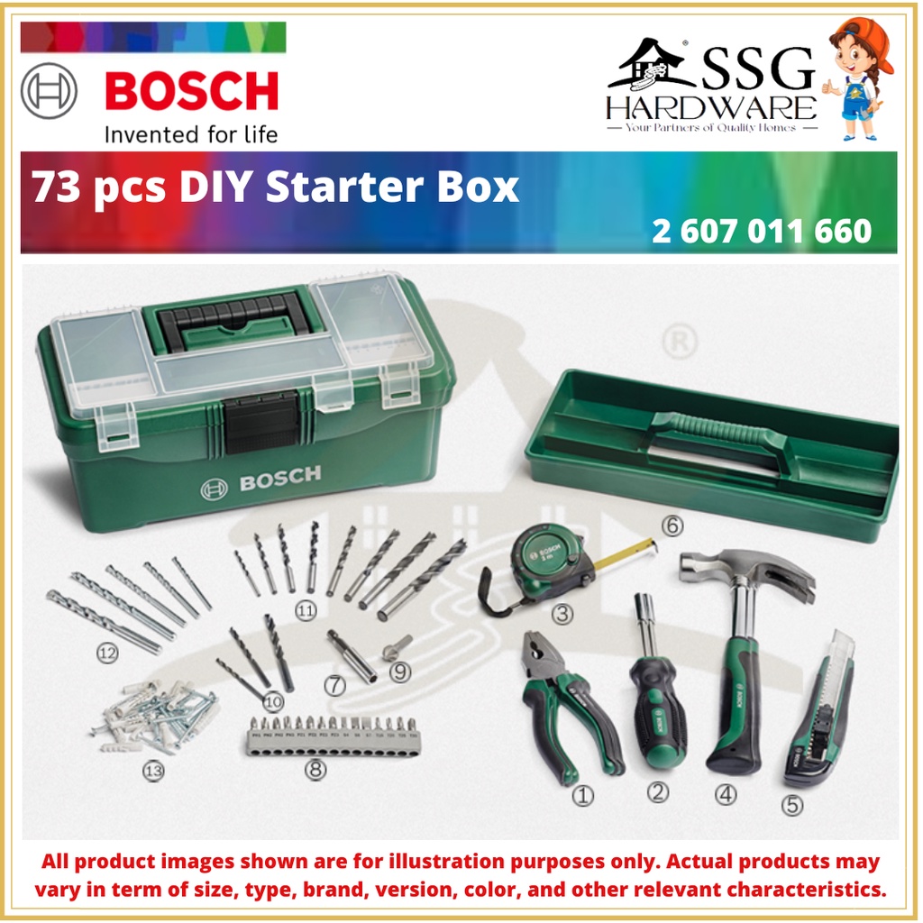 BOSCH 73pcs DIY Starter Kit With Carrying Storage Box Home Diy Tool Box Set / Alat Tanggan Mata Tebuk Batu Besi Dinding