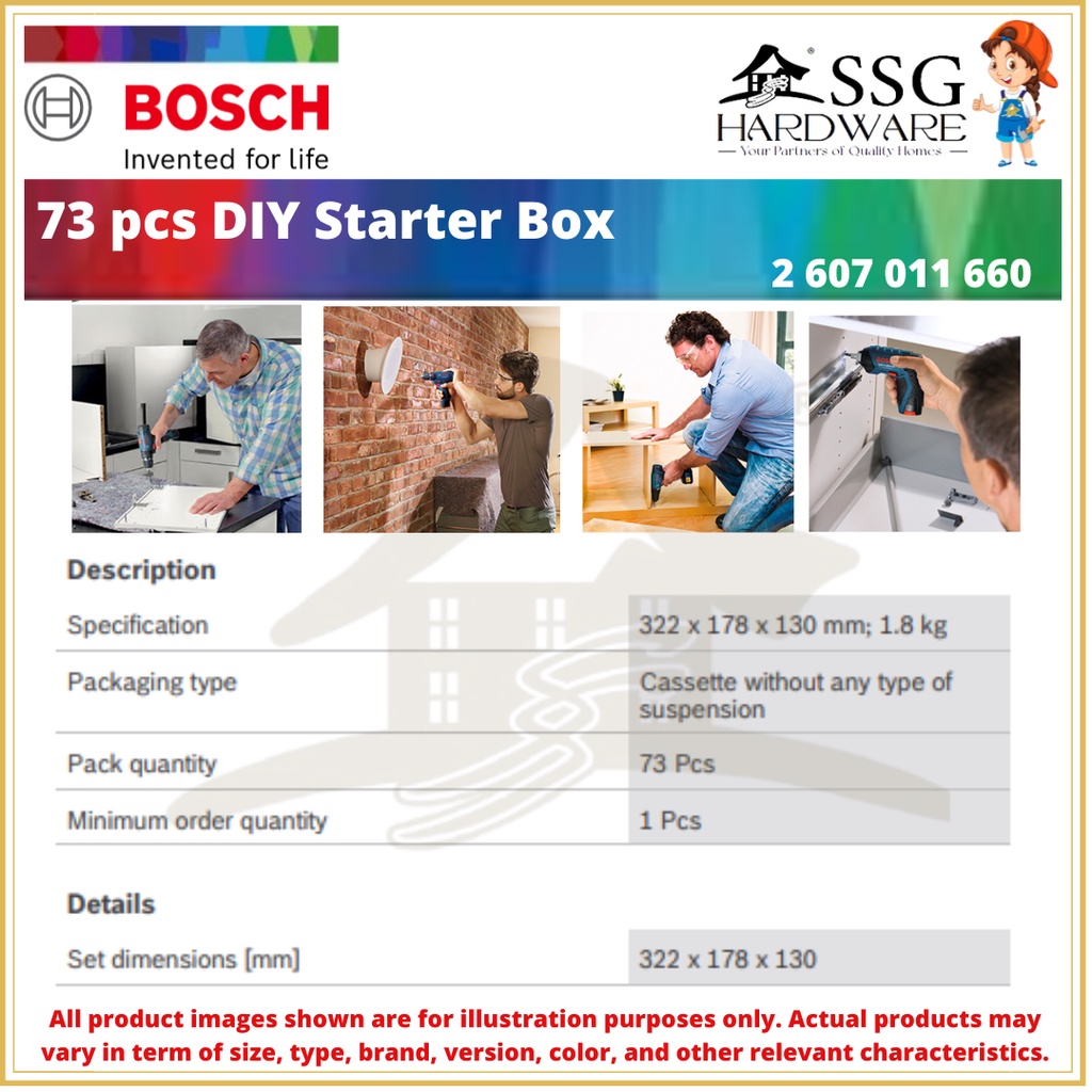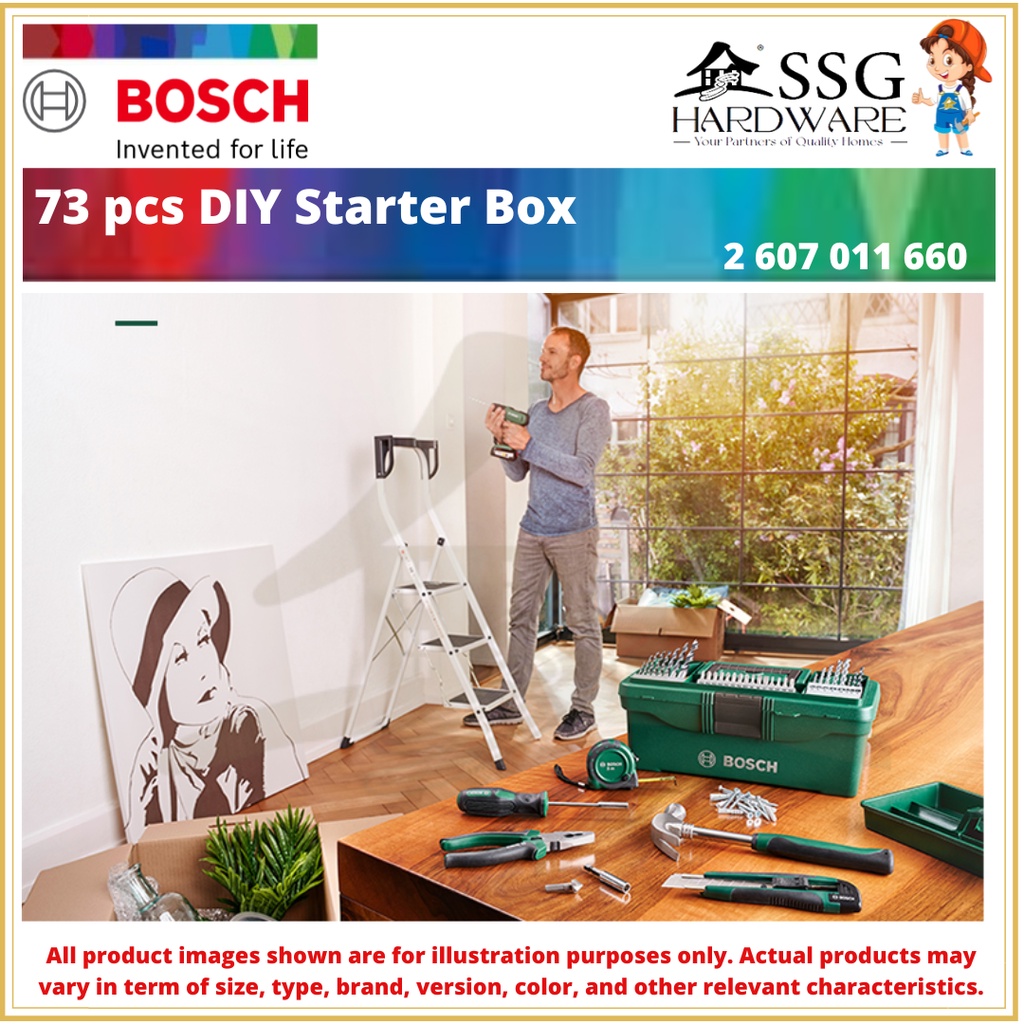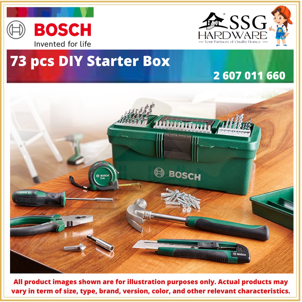 BOSCH 73pcs DIY Starter Kit With Carrying Storage Box Home Diy Tool Box Set / Alat Tanggan Mata Tebuk Batu Besi Dinding