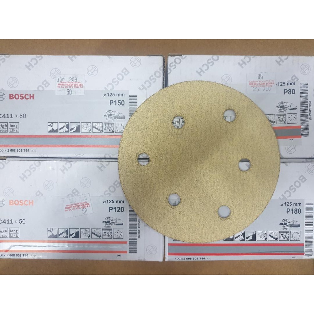BOSCH Coated C411 Velcro Disc 125MM 6 Holes / Sanding Disc ( Velcro Type )