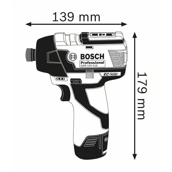 BOSCH GDR12V-EC CORDLESS IMPACT DRIVER (12V) C/W 2x 2.0AH 12V + GAL12V-40 CHARGER ( GDR12VEC )