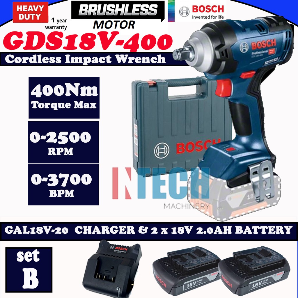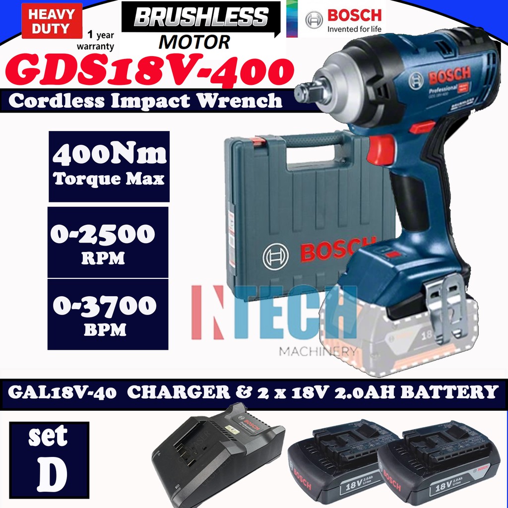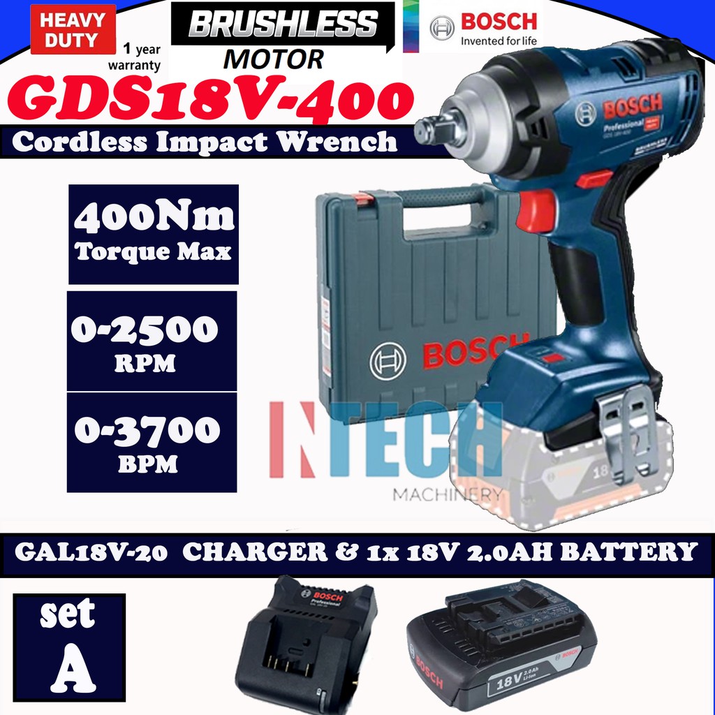 BOSCH GDS18V-400 / GDS18V400 CORDLESS IMPACT WRENCH BRUSHLESS MOTOR C/W 2.0AH BATTERY PACK
