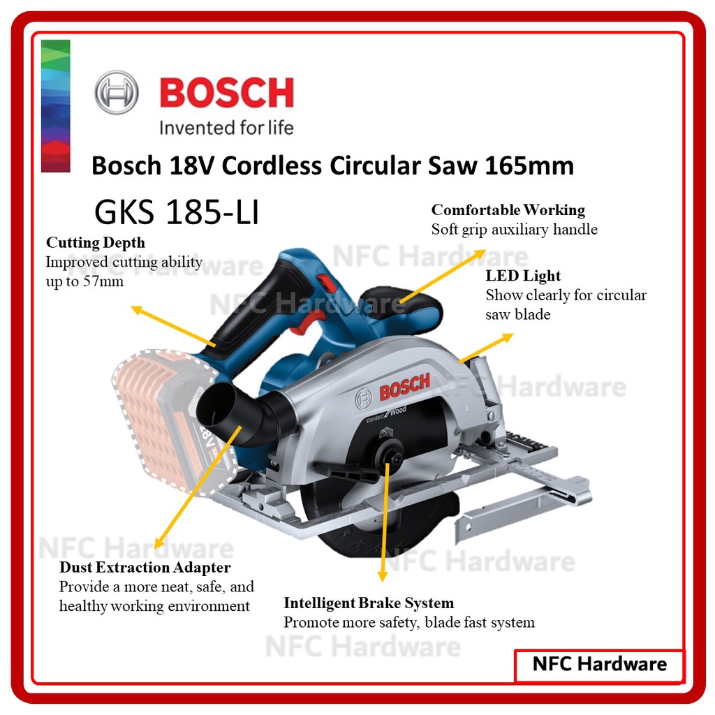 BOSCH GKS 185-LI 18V Cordless Circular Saw 165mm