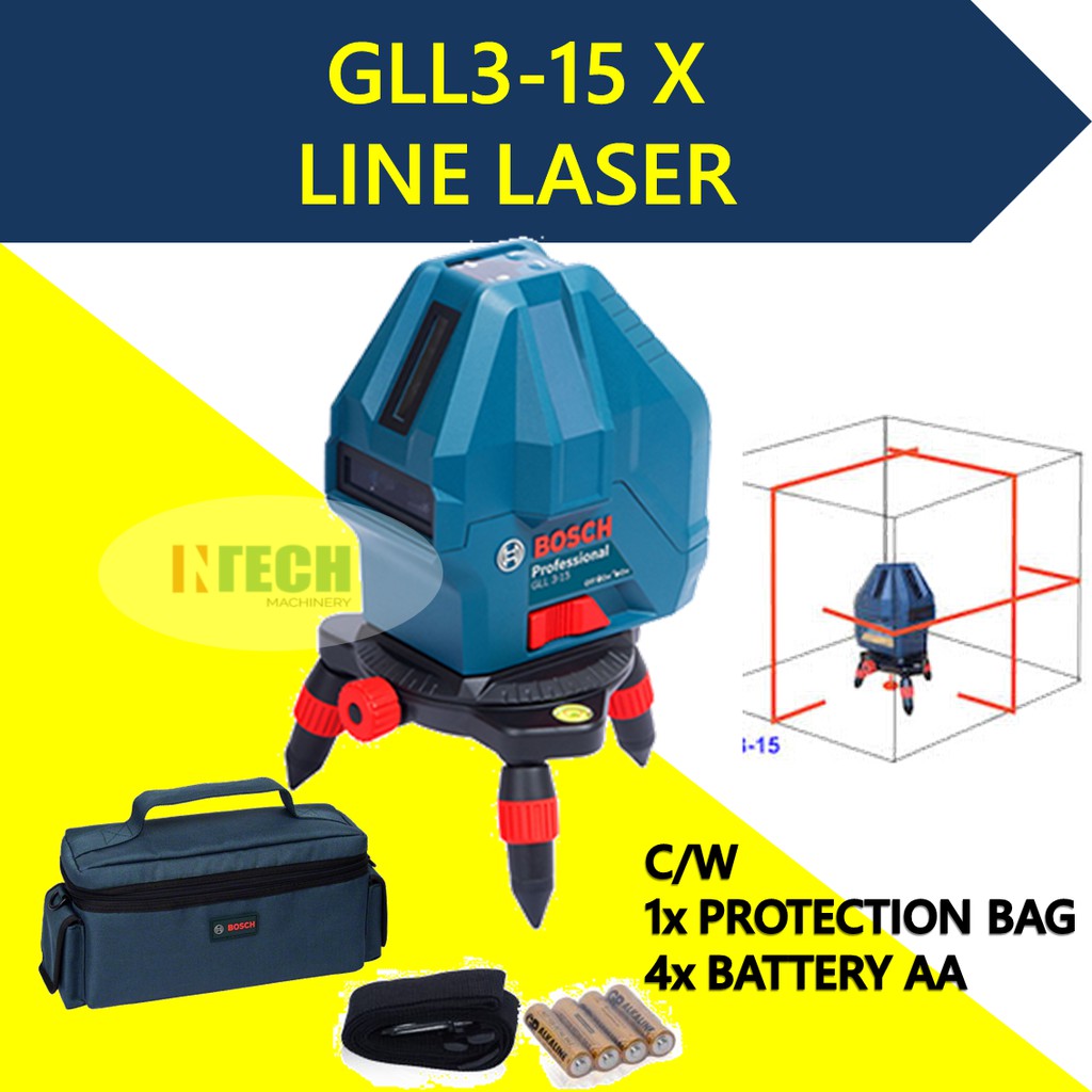 BOSCH GLL3-15X SELF LEVELLING LINE LASER 15M WORKING RANGE / 3 LINES PROJECTION