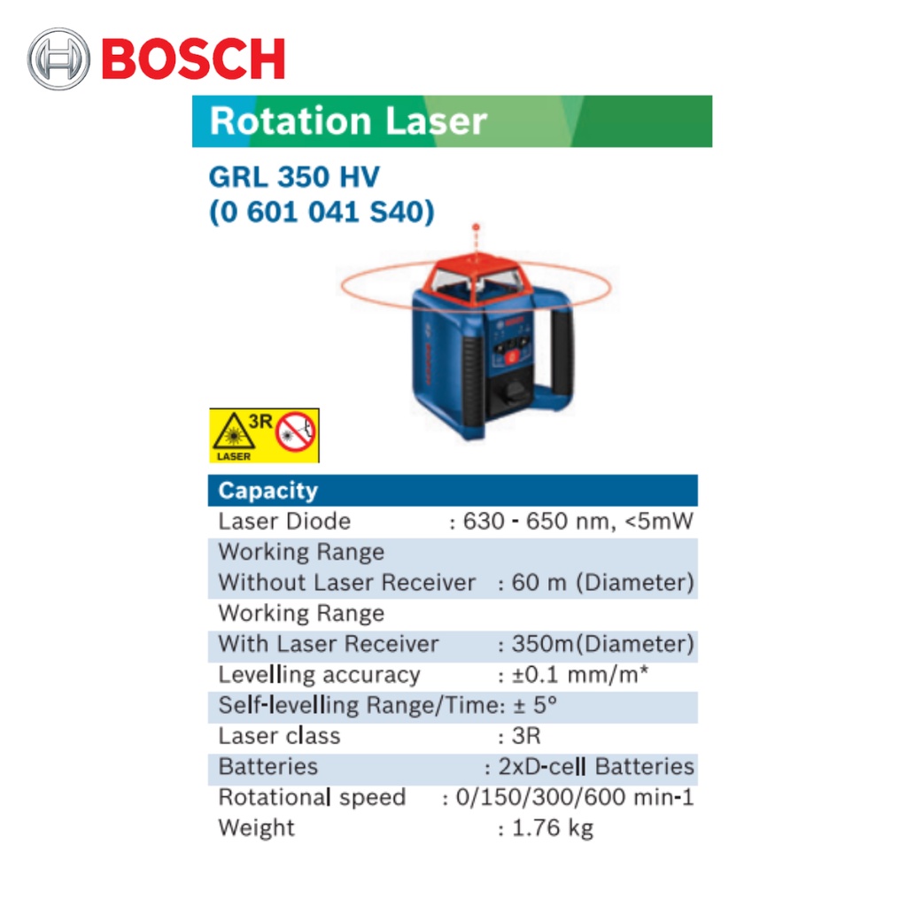 BOSCH GRL350HV Rotation Leveler Set 350M Working Range [FREE] LR30 Laser Receiver and BT170 Aluminum Tripod 0601041S40
