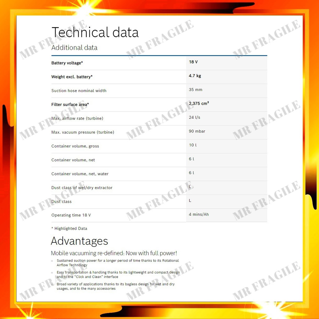 BOSCH HEAVY DUTY GAS 18V-10L CORDLESS DUST EXTRACTOR / MOBILE VACUUM GAS 18V 10L