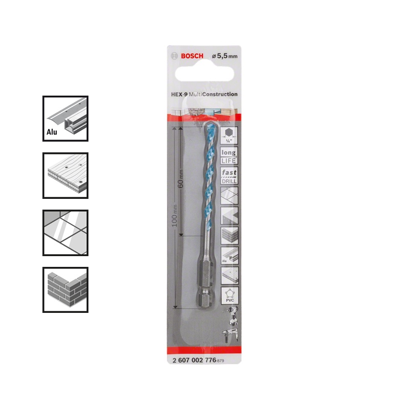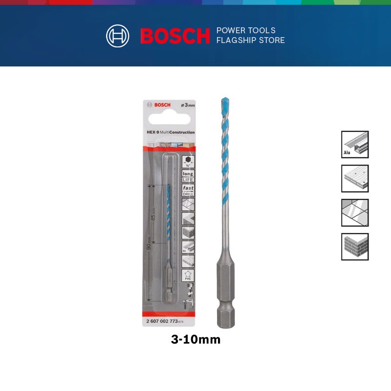 BOSCH Hex-9 Multi Construction Drill Bit 3 x 45 x 90 (3mm -10mm)