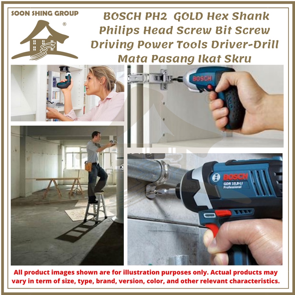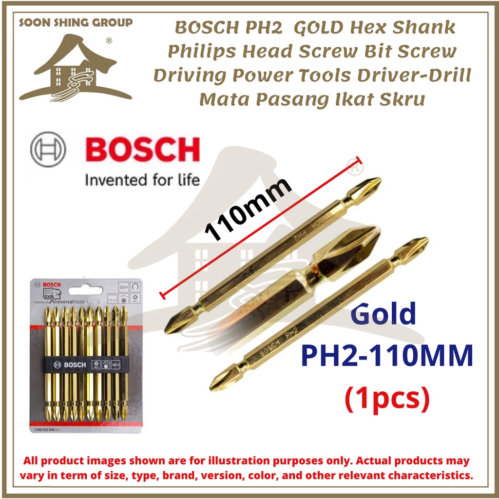 BOSCH PH2 65/110mm GOLD Hex Shank Philips Head Screw Bit Screw Driving Power Tools Driver Drill Mata Pasang Ikat Skru