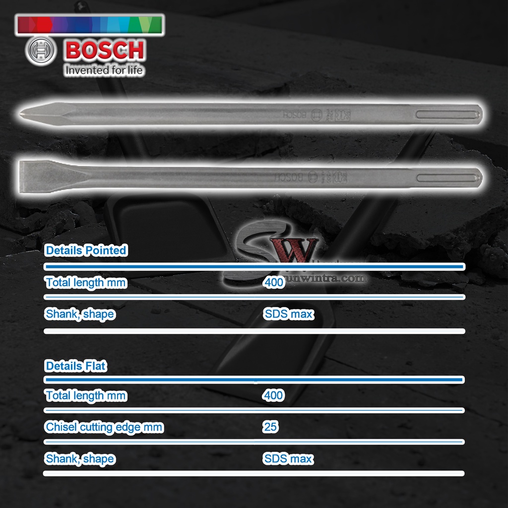 BOSCH SDS MAX POINTED CHISEL / FLAT CHISEL 400MM #2608690128 #2608690125