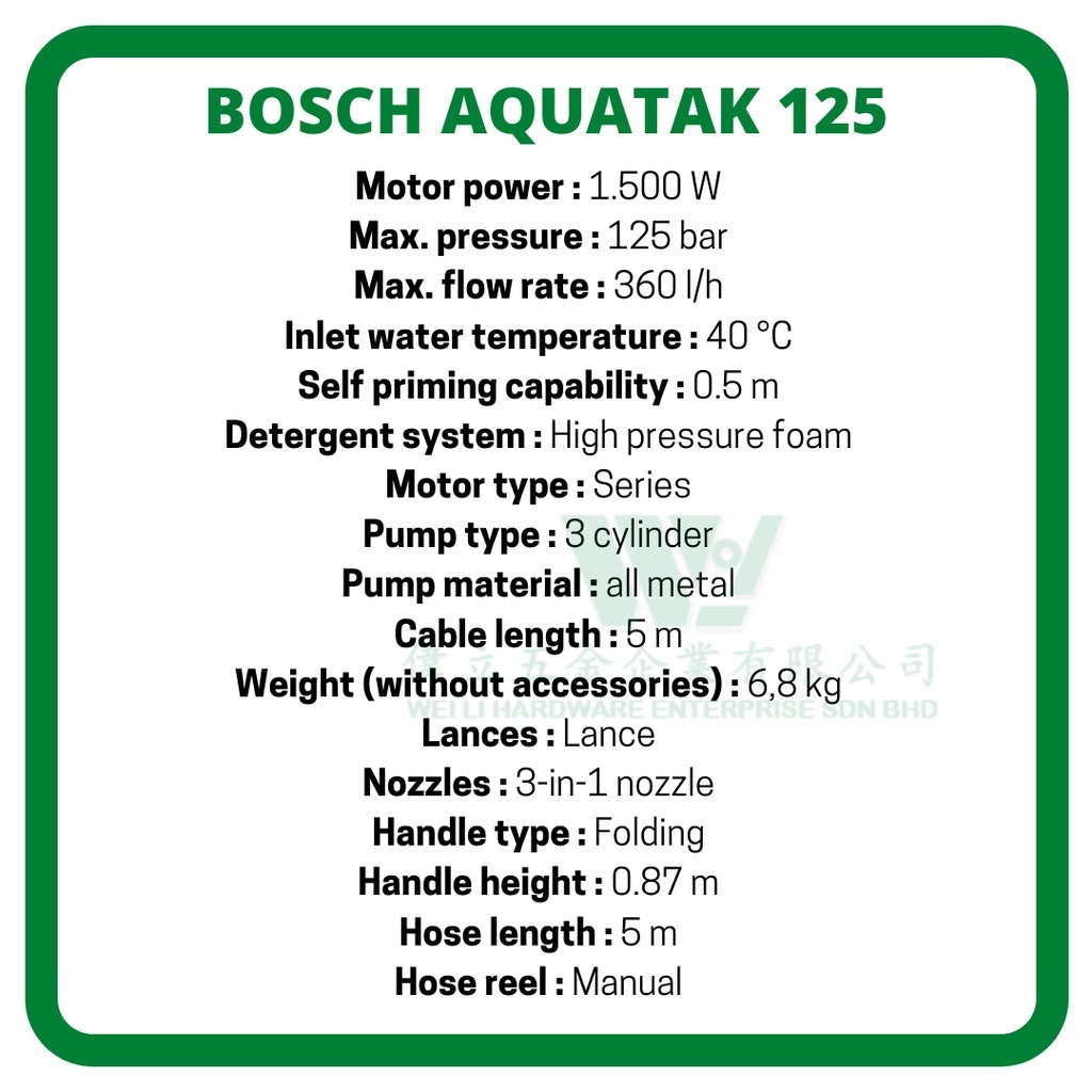 BOSCH Universal AQUATAK 125 High Pressure Washer 125Bar 1500W / Bosch Water Jet / Pressure Cleaner / Bosch Aquatak 125