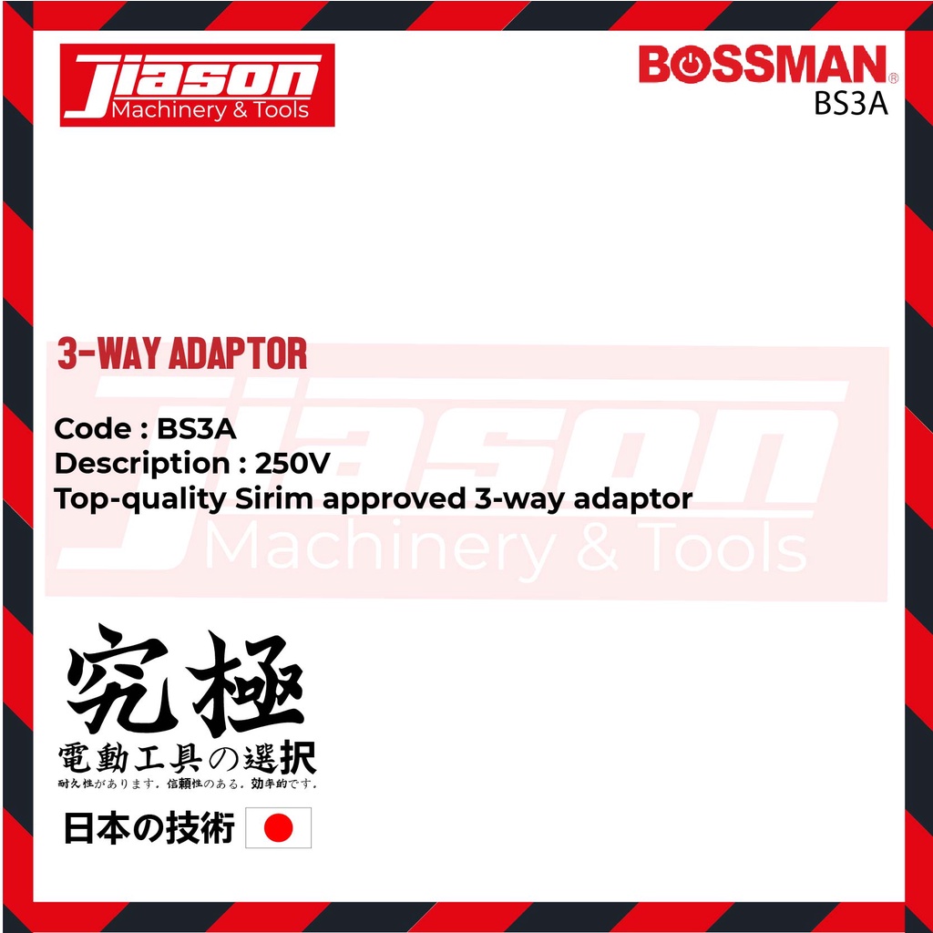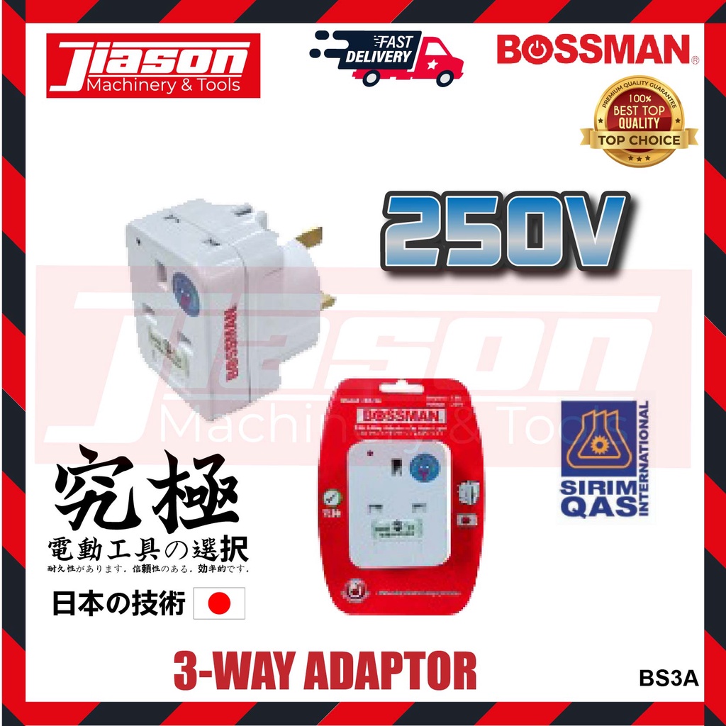 BOSSMAN BS3A 250V 3-Way Adaptor (SIRIM Certified)