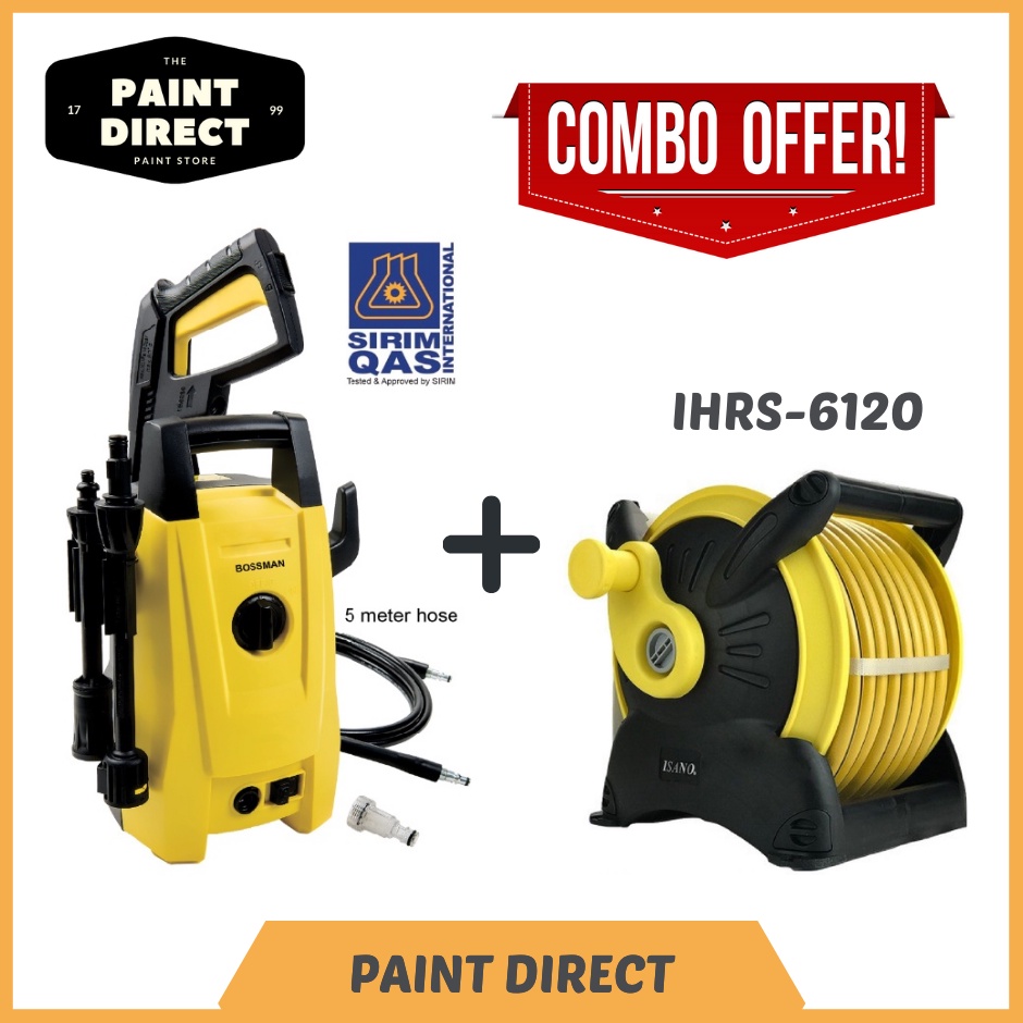 BOSSMAN Combo BPC-117 + Hose Reel / High Pressure Washer 110bar & ISANO STACKABLE HOSE REEL SET 20METER
