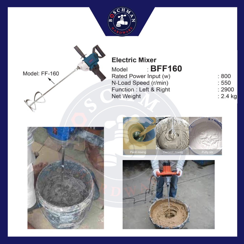 BOSSMAN Electric Mixer Electric Cement Paint Concrete Hand Mixer Blender Machine H/Duty Mesin Pengadun Simen 800W 550RPM