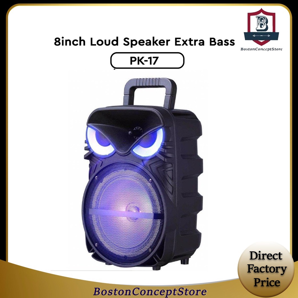 BOSTON PK17 8inch Loud Speaker Extra Bass PK-17 Bluetooth Karaoke Speaker with Microphone (Bluetooth/ FM/ USB/ SD Card)