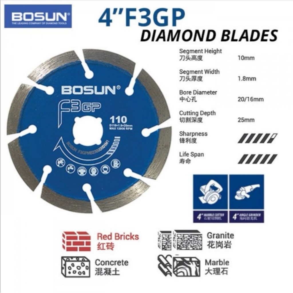 BOSUN 4" Diamond Wheel Cutting Disc Mosek/Stone/Wood
