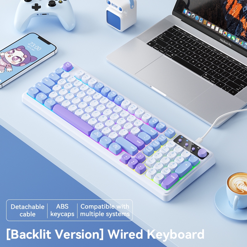 B.O.W K520 RGB Backlight Rechargeable Ergonomic Gaming Keyboard With Volume Button