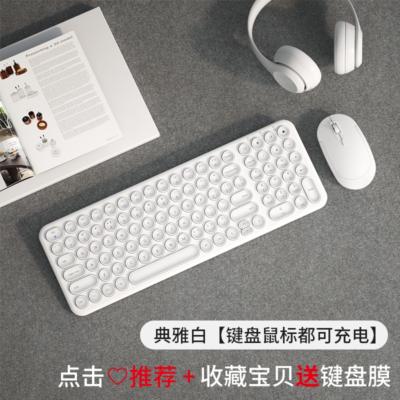 BOW rechargeable 2.4g wireless keyboard and mouse set plug and play laptop pink silent mute keyboard desktop computer office mouse typing suit girls